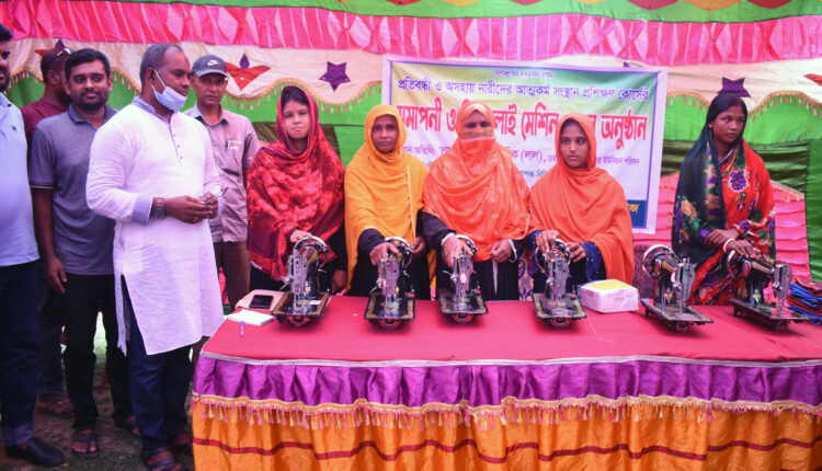 খাসকররা প্রতিনিধি: আলমডাঙ্গার খাসকররায় প্রতিবন্ধী ও অসহায় নারীদের আত্মকর্ম সংস্থার লক্ষ্যে সেলাইমেশিন বিতরণ করা হয়েছে। গতকাল শনিবার উই আর ফর আদার্স ও রাইছা ব্যাগ অ্যান্ড ফ্যাশন হাউজের যৌথ উদ্যোগে খাসকররা ফাউন্ডেশনের সহযোগিতায় ৩ মাসব্যাপী ফ্রি সেলাই প্রশিক্ষণের আয়োজন করা হয়। প্রশিক্ষণ শেষে কোর্স সম্পন্নকারী ৮ প্রতিবন্ধী ও অসহায় নারীদের মাঝে ৭টি সেলাই মেশিন ও একজনকে ব্লক ও বাটিকের সামগ্রী বিতরণ করা হয়। অনুষ্ঠানে প্রধান অতিথি ছিলেন খাসকররা ইউপি চেয়ারম্যান তাছফির আহমেদ মল্লিক লাল। বিষেশ অতিথি ছিলেন খাসকরা পুলিশ ফাঁড়ির এসআই ওসমান গনি, খাসকররা ইউনিয়ন পরিষদের উদ্যোক্তা মো. হাসানুজ্জামান, রাইছা ব্যাগ এন্ড ফ্যাশন হাউজের এমডি শিরিনা খাতুন। এছাড়া আরও উপস্থিত ছিলেন গোলাম রসুল, গিয়াস উদ্দীন, ইউনুচ আলী, তানভীর আহম্মেদ, শাজাহান আলী, ফরিদুল ইসলাম, আনিচুর রহমান, রকিবুল ইসলাম প্রমুখ।