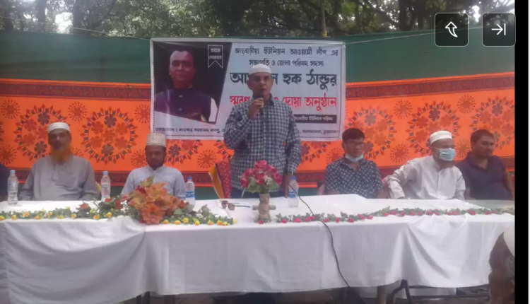 আসমানখালী প্রতিনিধি: আলমডাঙ্গার ভাংবাড়িয়া ইউনিয়ন আওয়ামী লীগের সভাপতি ও জেলা পরিষদের সদস্য আশাবুল হক ঠান্ডুর বিদায়ী আত্মার মাগফিরাত কামনা করে গতকাল সোমবার বেলা ১০ টার দিকে দোয়া মোনাজাত ও স্মৃতিচারণ সভা অনুষ্ঠিত হয়েছে। অনুষ্ঠানের শুরুতে পবিত্র কোরআন তেলোয়াত করেন মাও. আবু মুসা। পরে ১ মিনিট নিরবতা পালন করা হয়। সভায় সভাপতিত্ব করেন জেলা আওয়ামী লীগের তথ্য ও গবেষণা বিষয়ক সম্পাদক ভাংবাড়িয়া ইউপি চেয়ারম্যান কাওসার আহম্মদ বাবলু। প্রধান অতিথি ছিলেন ভাংবাড়িয়া ইউপি সচিব তোফাজ্জেল হোসেন সেন্টু। স্মৃতিচরণ করেন ভাংবাড়িয়া ইউপি সদস্য ও ইউনিয়ন যুবলীগের সাধারণ সম্পাদক শেখ জাফর আলী। বিষেশ অতিথি ছিলেন আজাবুল করীম বিশ্বাস, আরিফ আহম্মদ প্রিন্স, উপজেলা সমাজসেবা কর্মী জামাল উদ্দীন, ইউনিয়ন যুবলীগের সাবেক সভাপতি রেজাউল করীম, ইউপি সদস্য গিয়াস উদ্দীন মালিথা, মনোয়ার হোসেন মনা, ইসমাইল হোসেন এশা, রিপন বিশ্বাস, সাজেদুল ইসলাম, হাটবোয়ালিয়া মেরিট মডেল স্কুলের প্রধান শিক্ষক বকতিয়ার খলজি, রবিউল হক, কিয়াম উদ্দীন, আজিজুল হক, হাজি ওলিদ, মারফত আলী, মনোয়ার হোসেন, সুলতান হোসেন, লাকছু বিশ্বাস, ইদ্রিস আলী, ডাক্টার আক্কাস আলী, রাশিদুল ইসলাম, ইনামুল হক, শুকুর ম-ল, জান্টু হোসেন ছাড়াও এলাকার মুসল্লিগণ। দোয়া ও মোনাজাত করেন ভাংবাড়িয়া দাখিল মাদরাসার সহকারী শিক্ষক মাও. মোহাম্মদ আবু মুসা। অনুষ্ঠান পরিচালনা করেন হাটবোয়ালিয়া মেরিট মডেল স্কুলের পরিচালক শাহাবুল ইসলাম।