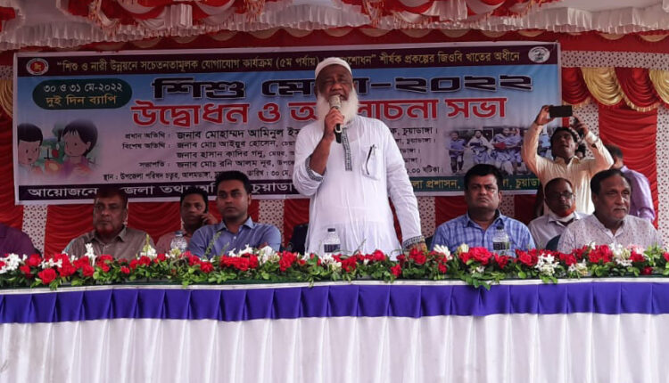 আলমডাঙ্গা ব্যুরো: আলমডাঙ্গায় দুইদিনব্যাপী শিশুমেলার উদ্বোধন করা হয়েছে। চুয়াডাঙ্গা জেলা তথ্য অফিসের আয়োজনে ও আলমডাঙ্গা উপজেলা প্রশাসনের সহযোগিতায় শিশু ও নারী উন্নয়নে সচেতনামূলক যোগাযোগ কার্যক্রমের শীর্ষক প্রকল্পের জিওবি খাতের অধীনে জনসচেতনা বৃদ্ধির লক্ষ্যে এ মেলা উদ্বোধন করা হয়। সোমবার সকাল দশটার দিকে আলমডাঙ্গা উপজেলা পরিষদ চত্বরে র্যালি বের হয়ে শহরের প্রধান প্রধান সড়ক প্রদক্ষিণ শেষে ফিতা কেটে মেলা উদ্বোধন করেন। উদ্বোধন শেষে আলোচনাসভায় উপজেলা নির্বাহী অফিসার রনি আলম নূরের সভাপতিত্বে প্রধান অতিথি ছিলেন আলমডাঙ্গা উপজেলা চেয়ারম্যান আইয়ুব হোসেন। বিশেষ অতিথি ছিলেন সহকারী কমিশনার (ভূমি) রেজওয়ানা নাহিদ, উপজেলা আ.লীগের সভাপতি আবু মুসা, সাধারণ সম্পাদক ইয়াকুব আলী মাস্টার, উপজেলা মাধ্যমিক শিক্ষা অফিসার আব্দুল বারি, একাডেমিক সুপারভাইজার ইমরুল হক, সহকারী তথ্য অফিসার রুস্তম আলী, সরকারি পাইলট মাধ্যমিক বিদ্যালয়ের প্রধান শিক্ষক রবিউল ইসলাম খান, পাইলট মাধ্যমিক বালিকা বিদ্যালয়ের প্রধান শিক্ষক মনিরুজ্জামান, আলমডাঙ্গা প্রেসক্লাবের সভাপতি খন্দকার শাহ আলম মন্টু, সাধারণ সম্পাদক খন্দকার হামিদুল ইসলাম আজম, থানার সেকেন্ড অফিসার এসআই সঞ্জিত কুমার ম-ল। স্বাগত বক্তব্য রাখেন জেলা তথ্য অফিসার আমিনুল ইসলাম। কলেজিয়েট স্কুলের উপাধ্যক্ষ শামীম রেজার উপস্থাপনায় বক্তব্য রাখেন তথ্য অফিসের ঘোষক ফারুক হোসেন, উপজেলা আ.লীগের সাবেক প্রচার সম্পাদক মাসুদ রানা তুহিন, চিৎলা ইউনিয়ন আ.লীগের সভাপতি খন্দকার আব্দুল বাতেন। আলোচনা সভা শেষে অথিতিবৃন্দ মেলার স্টলগুলো পরিদর্শন শেষে সন্তোষ প্রকাশ করেন। বেলা সাড়ে ১২টায় চিত্রাঙ্কন প্রতিযোগিতা, সাড়ে ৩টায় সঙ্গীত প্রতিযোগিতা ও সাড়ে ৫ টায় সঙ্গীতানুষ্ঠান এবং সন্ধ্যায় চলচ্চিত্র প্রদর্শনী করা হয়।