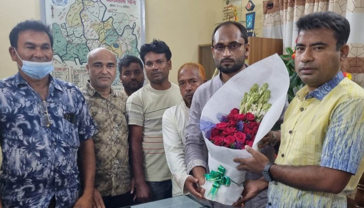 আলমডাঙ্গা ব্যুরো: আলমডাঙ্গার নবাগত অফিসার ইনচার্জ বিপ্লব কুমার নাথের সাথে সৌজন্য সাক্ষাত করেছেন নাগদাহ ইউপি চেয়ারম্যান এজাজ ইমতিয়াজ বিপুল জোয়ার্দ্দার। গতকাল বুধবার সন্ধ্যায় তিনি সৌজন্য সাক্ষাত করেন ও ফুলেল শুভেচ্ছা বিনিময় করেন। শুভেচ্ছা বিনিময়কালে উপস্থিত ছিলেন থানার ওসি (অপারেশন) একরামুল হক, থানার এসআই আশিকুল, এএসআই মোস্তাফা, নাগদাহ ইউনিয়ন আওয়ামী লীগের সাংগঠনিক সম্পাদক আনন্দ ম-ল, সহ-সভাপতি ইসমাইল, সহ-সভাপতি আব্দুল খালেক, আ.লীগ নেতা শাহিন জোয়ার্দ্দার, রিপন, শিমুল, টগর প্রমুখ।