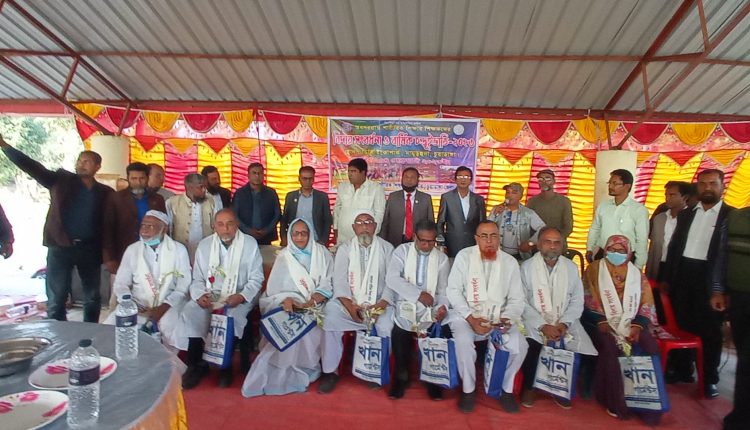 উত্তরীয়সহ বিরোচিত সংবর্ধনায় অবসরপ্রাপ্ত শিক্ষকরা অভিভূত
