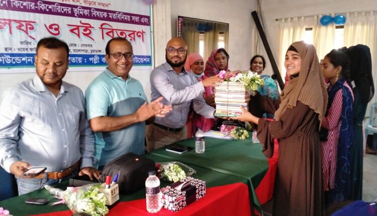 স্টাফ রিপোর্টার: ‘বই পড়লে বাড়বে জ্ঞান, বাড়বে মান, বাড়বে সম্মান’ এই প্রতিপাদ্যকে সামনে রেখে চুয়াডাঙ্গায় কমিউনিটি লাইব্রেরি স্থাপনে কিশোর-কিশোরীদের ভূমিকা বিষয়ক মতবিনিময়সভা এবং বুকসেলফ বই বিতরণ কার্যক্রম অনুষ্ঠিত হয়েছে। গতকাল সোমবার বেলা ১১টায় শহরের মালোপাড়াস্থ ওয়েভ ফাউন্ডেশন ট্রেনিং সেন্টারে এ মতবিনিময় অনুষ্ঠিত হয়। পল্লী কর্ম-সহায়ক ফাউন্ডেশনের সহযোগিতায় ওয়েভ ফাউন্ডেশন এ মতবিনিময় সভায় আয়োজন করে।
