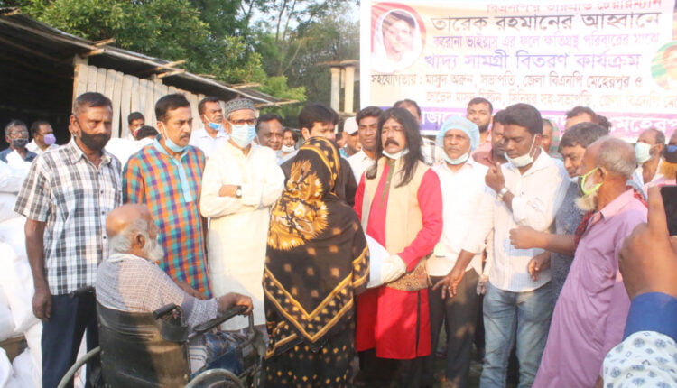 গাংনী প্রতিনিধি: বিএনপি চেয়ারপারসন খালেদা জিয়ার জন্য দোয়া চাইলেন মেহেরপুর জেলা বিএনপি সভাপতি ও সাবেক এমপি মাসুদ অরুণ। গতকাল বৃহস্পতিবার সকালে গাংনীর জুগিন্দা মাধ্যমিক বিদ্যালয় প্রাঙ্গণে কর্মহীন মানুষের মাঝে ত্রাণ বিতরণ অনুষ্ঠানে প্রধান অতিথির বক্তৃতায় তিনি বলেন, খালেদা জিয়া ও তারেক রহমানের নির্দেশক্রমে আমরা মেহেরপুর জেলায় ত্রাণ বিতরণ করছি। আপনার খালেদা জিয়ার জন্য দোয়া করবেন। জনগণের নায্য সংগ্রামে বিএনপি সবসময় জনগণের পাশে আছে এবং পাশে থাকবে। মেহেরপুর জেলা বিএপির সিনিয়র সহসভাপতি জাভেদ মাসুদ মিল্টনের আর্থিক সহায়তায় মেহেরপুর জেলায় বিভিন্ন এলাকায় ত্রাণ বিতরণ করা হচ্ছে। গাংনী উপজেলায় আড়াই হাজার কর্মহীন দরিদ্র মানুষ এ ত্রাণ পাবেন। এ উপজেলায় ত্রাণ বিতরণের অংশ হিসেবে গতকাল জুগিন্দা ও ধানখোলা মাধ্যমিক বিদ্যালয় প্রাঙ্গণে আনুষ্ঠানিকতার মাধ্যমে এ কার্যক্রম শুরু হয়। ত্রাণ বিতরণ কার্যক্রম চলমান থাকবে বলে জানিয়েছেন জাভেদ মাসুদ মিল্টন।