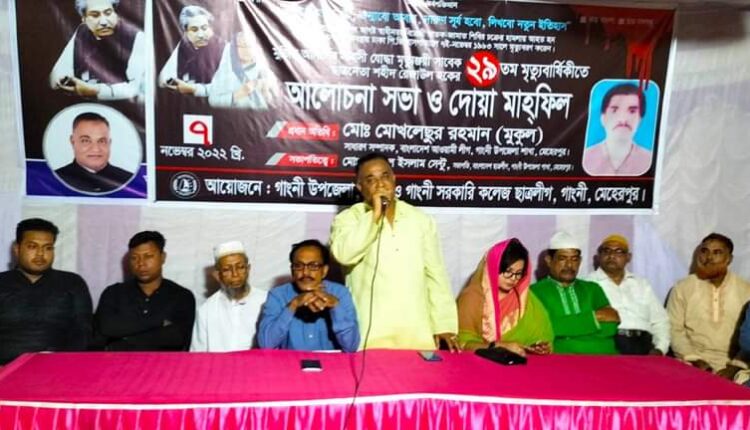 গাংনী প্রতিনিধি: মেহেরপুরের গাংনীতে সাবেক ছাত্রলীগ নেতা শহীদ রেজাউল হকের মৃত্যুবার্ষিকী পালন করা হয়েছে। এ উপলক্ষে গতকাল বিকেলে উপজেলা আওয়ামী লীগের সাধারণ সম্পাদকের বাসভবনে আলোচনাসভা ও দোয়া মাহফিলে আয়োজন করা হয়।