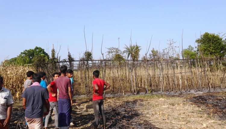 জানা গেছে, গতকাল দুপুর দেড়টার দিকে আমিরপুর গ্রামের মৃত আনছার আলীর ছেলে সালাম আলী গ্রামের মাঠে নিজ জমির ভুট্টার ডাটা পোড়াতে যায়। ভুট্টার ডাটায় আগুন ধরিয়ে দিলে দাউদাউ করে আগুন জ্বলতে থাকে। এ সময় আগুন ছড়িয়ে পড়ে আমিরপুর গ্রামের দুখে মন্ডলের ছেলে মহাবুলের ১ বিঘা ভুট্টাক্ষেত পুড়ে যায়। তিনি জানান, ক্ষতির পরিমান ৫০ হাজার টাকার বেশি। ভুট্টাক্ষেত থেকে একই গ্রামের আনোয়ারের ছেলে রতনের পানবরজে লাগে। আগুনে পান বরজটি সম্পূর্ণ পুড়ে যায়। তিনি জানান ক্ষতির পরিমান প্রায় আড়াই লাখ টাকা। এ ব্যাপারে মোমিনপুর ইউনিয়ন পরিষদের ইউপি সদস্য শাহিনুর আলম ঘটনার সত্যতা স্বীকার করে বলেন, অভিযুক্ত সালাম হালকা মানসিক ভারসাম্যহীন। নিজ ভুট্টা ক্ষেতের ডাটা পোড়াতে গিয়ে অসাবধানতাবসত পাশের ভুট্টা ও পান বরজে আগুন লেগে সম্পূর্ণ পুড়ে গেছে।