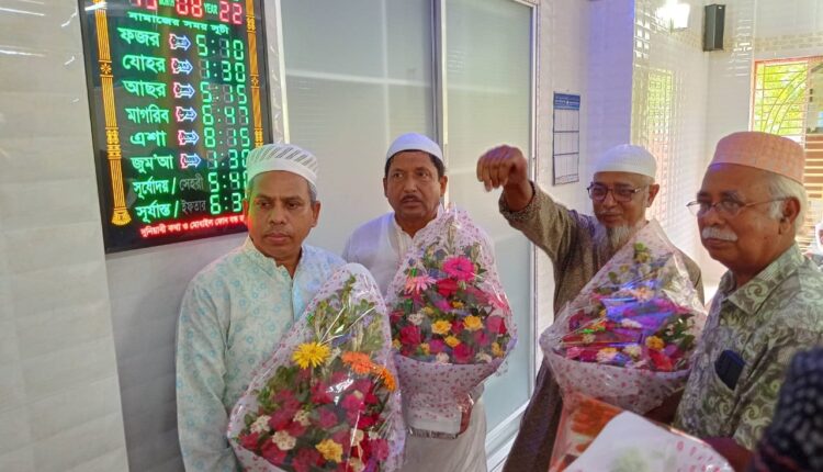 স্টাফ রিপোর্টার: চুয়াডাঙ্গার থানা কাউন্সিল পাড়ায় বায়তুর রহমান জামে মসজিদের উদ্বোধন করা হয়েছে। গতকাল শুক্রবার জুম্মার নামাজ আদায়ের মধ্য দিয়ে নবনির্মিত এ মসজিদের উদ্বোধন করা হয়। এমএ বারী মাধ্যমিক উচ্চ বিদ্যালয়ের সাবেক প্রধান শিক্ষক আলহাজ্ব একেএম আলী আক্তারের সভাপতিত্বে আনুষ্ঠানিক উদ্বোধনী অনুষ্ঠানে উপস্থিত ছিলেন চুয়াডাঙ্গা জেলা আওয়ামী লীগের যুগ্ম সাধারণ সম্পাদক রিয়াজুল ইসলাম জোয়াদ্দার টোটন, সদর উপজেলা নির্বাহী অফিসার শামীম ভূইয়া। আরও উপস্থিত ছিলেন ঝিনাইদহ জাহেদী ফাউন্ডেশনের নির্বাহী সদস্য মোহাম্মদ কাইয়ুম শাহরিয়ার হোসেন হিজল, ফাউন্ডেশনের পক্ষে ইসরাইল হোসেন শান্তি জোয়াদ্দার, আক্তার হোসেন, তবিবুর রহমান লাবু ও মোহাম্মদ ইউনুস আলী। এছাড়া স্থানীয়দের মধ্যে উপস্থিত ছিলেন ৯নং ওয়ার্ড কাউন্সিলর কামরুজ্জামান চাঁদ, ৭নং ওয়ার্ড কাউন্সিলর আহমদ উজ্জল হোসেন, ৮নং ওয়ার্ড কাউন্সিলর মোহাম্মদ সাইফুর রহমান প্রমুখ। গতকাল উদ্বোধনী জুম্মার নামাজের ইমামতি করেন মাওলানা আলহাজ্ব বশির উদ্দিন। মসজিদটির নির্মাণ কাজে এবং সার্বিক সহযোগিতায় ছিলেন জমির উদ্দিন, দেলোয়ার হোসেন, হাদিউজ্জামান হাদি, আবুবক্কর, মোহাম্মদ বুলবুল, জাহিদ হোসেন, নিশান প্রমূখ। উল্লেখ্য, বায়তুর রহমান জামে মসজিদের জমি দান করেন মসজিদের সভাপতি আলহাজ্ব একেএম আলী আক্তার ও তাঁর পরিবারবর্গ। পরে তার বন্ধু জাহেদী ফাউন্ডেশনের পরিচালক নাসির শাহরিয়ার জাহেদীর সহযোগিতায় ৮৫ লাখ টাকা ব্যায়ে দেড় বছর ধরে দ্বিতল মসজিদের নির্মাণকাজ সম্পন্ন হয়।