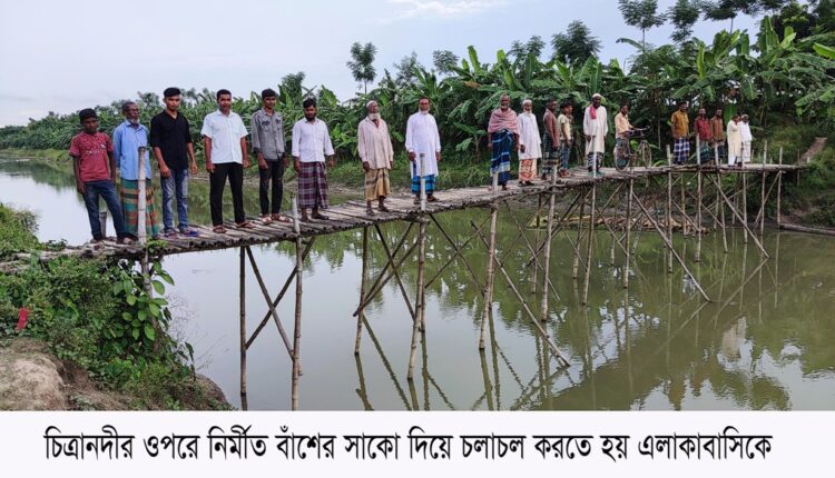 বেগমপুর প্রতিনিধি: চুয়াডাঙ্গার দোস্ত, সুবদপুর, বোয়ালমারি, মজিবপাড়া, কুন্দিপুর গ্রামের প্রায় ৩ হাজার মানুষের চলাচলের একমাত্র ভরসা বাঁশের সাঁকো। বিকল্প পথ তিন কিলোমিটার হওয়ায় এই সাঁকো দিয়েই যাতায়াত করতে হয় গ্রামবাসীদের। স্থানীয়দের উদ্যোগে নির্মিত সাঁকোটি প্রতি বছর মেরামত করেন নিজেরাই। চুয়াডাঙ্গা সদর উপজেলার বেগমপুর ইউনিয়নের দোস্ত গ্রামের ইউনুচ আলীর বাড়ির পাশে অবস্থিত চিত্রা নদী। নদীর ওপর স্থায়ী কোনো সেতু না থাকায় নিজেদের নির্মিত বাঁশের সাঁকো দিয়ে ঝুঁকি নিয়ে চলাচল করছেন এ গ্রামগুলোর মানুষেরা। উপস্থিত হাবিবুর রহমান কাজল, আব্দুল লতিব, হারুন, আলাউদ্দিন, আবুল, সাইদুল, মনি, আবু বাক্কা, ইনু, আসাদুল, জামাত আলীসহ অনেকেই জানালেন, সেতুর অভাবে হাজারো মানুষকে ঝুঁকি নিয়ে বাঁশের সাঁকোর ওপর দিয়ে নদী পারাপার হতে হয়। ফলে জনগণের দুর্ভোগ পৌঁছায় চরমে। প্রতি বছর এলাকার মানুষেরা স্বেচ্ছাশ্রমে বাঁশের সাঁকো নির্মাণ করেন আর চাঁদা তুলে কেনেন বাঁশ-খুঁটি। ৫টি গ্রামের কৃষকের প্রায় দেড় হাজার বিঘা জমির চাষাবাদ আছে। তাদের উৎপাদিত ফসল মাঠ থেকে ঝুঁকিপূর্ণ এ সাঁকোর ওপর দিয়ে বাড়িতে আনতে হয়। যানবাহন চলাচল করতে না পারায় মাথাই করে ফসল বহন করতে হয়। এতে করে উৎপাদন খরচ কয়েকগুণ বেড়ে যায়। প্রায় সময় কৃষকেরা মাথায় করে মালামাল আনতে গিয়ে দুর্ঘটনায় পড়েন। এ ব্যাপারে চুয়াডাঙ্গা সদর উপজেলা পরিষদের চেয়ারম্যান আসাদুল হক বিশ্বাস বলেন, উপজেলা পরিষদের ব্রিজ করার একতিয়ার রয়েছে ৫০ ফুটের। এখানে ১৩০ ফুট লম্বা ব্রিজ লাগবে। ৫০ ফুটের ব্রিজ করা হলে নদীর গতিপথ সংকুচিত হয়ে পড়বে। তারপরও চেষ্টা করা হচ্ছে জনগুরুত্বপূর্ণ ব্রিজটি নির্মাণের। অপরদিকে ভুক্তভোগীরা অবিলম্বে একটি ব্রিজ নির্মাণে সরকারের সংশ্লিষ্ট বিভাগের জরুরি হস্তক্ষেপ কামনা করেছেন।