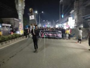 স্টাফ রিপোর্টার: চুয়াডাঙ্গায় ছাত্রলীগের উদ্যোগে বিক্ষোভ মিছিল ও প্রতিবাদসভা অনুষ্ঠিত হয়েছে। বিএনপি নেতা মোয়াজ্জজেম হোসেন আলালের ঘৃন্য মন্তব্যের প্রতিবাদে ও তার দৃষ্টান্তমূলক শাস্তির দাবিতে গতকাল বৃহস্পতিবার সন্ধ্যায় দলীয় কার্যালয়ের সামনে থেকে বিক্ষোভ মিছিল বের হয়। বিক্ষোভ মিছিলটি শহরের প্রধান প্রধান সড়ক প্রদক্ষিণ করে একই স্থানে এসে শেষ হয়। পরে নেতাকর্মীরা প্রতিবাদ সমাবেশের আয়োজন করে। প্রতিবাদ সমাবেশে বিএনপি নেতা মোয়াজ্জজেম হোসেন আলালের ঘৃন্য মন্তব্যের প্রতিবাদে ও তার দৃষ্টান্তমূলক শাস্তির দাবি জানোনো হয়। একই সাথে বিভিন্ন সময় পরিকল্পিতভাবে স্বাধীনতা বিরোধী অপশক্তি ছাত্রদল, ছাত্র শিবিরের ক্যাডারদের সশস্ত্র হামলায় নিহত রাজশাহী বিশ্ববিদ্যালয়ের ছাত্রলীগ কমী শহীদ ফারুক হোসেন, বুয়েট ছাত্রলীগ কর্মী শহীদ রায়হান দ্বিপ, রুয়েট ছাত্রী সাবিকুন নাহার সনি, চুয়াডাঙ্গা জেলা ছাত্রলীগ কর্মী কণক আহম্মেদ টুটুল, চট্টগ্রাম বাকলিয়া সরকারি কলেজের ৮ নেতা হত্যার রায় দ্রুত ঘোষণা করার দাবি জানানো হয়।