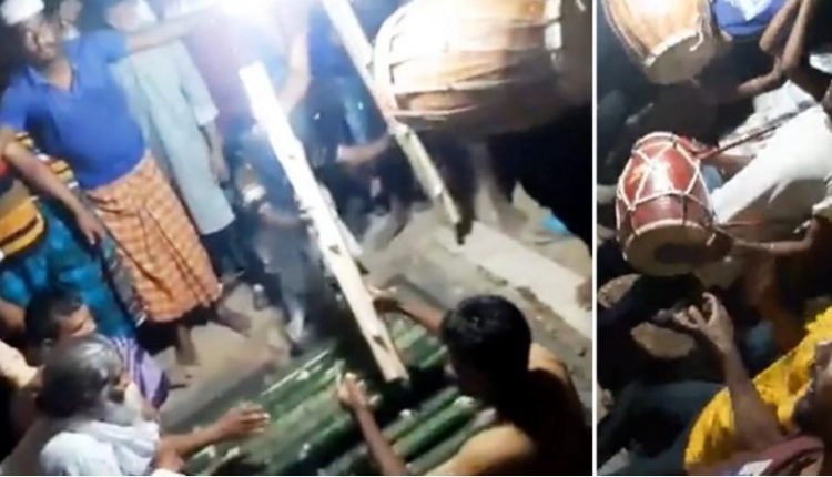 স্থানীয়রা জানান, বেশ কিছুদিন ধরে ব্লাড ক্যান্সারে ভুগছিলো ওই গ্রামের মহসিন আলীর ছেলে আঁখি। বাবার সঙ্গে আঁখি রাজধানীর ফুটপাতে হকারি করতো। সম্প্রতি সে অসুস্থ হয়ে পড়লে গ্রামের বাড়িতে চলে আসেন তারা। রোববার বিকেলে বাড়িতে তার মৃত্যু হয়। মৃত্যুর পর মহাসিন আলী তার ছেলের মরদেহ একই এলাকার ফকির শামীম রেজার হাতে তুলে দেন। পরে তার লোকজন নেচে-গেয়ে আঁখির মরদেহ দাফন করেন।