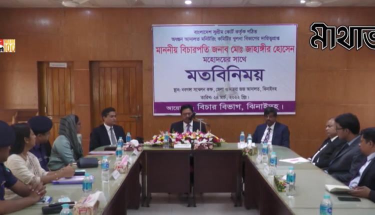 ঝিনাইদহে বিচার বিভাগ, জেলা প্রশাসন ও পুলিশ বিভাগের কর্মকর্তাদের সাথে মতবিনিময় করেছেন সুপ্রীম কোর্টের হাইকোর্ট বিভাগের বিচারপতি মো. জাহাঙ্গীর হোসেন। বৃহস্পতিবার বিকেলে ঝিনাইদহ জেলা ও দায়রা জজ আদালতের নবগঙ্গা সম্মেলন কক্ষে এ মতবিনিময় সভা অনুষ্ঠিত হয়। সে সময় জেলা জজ মো. নাজিমুদ্দৌলা, জেলা প্রশাসক মনিরা বেগম, পুলিশ সুপার মুনতাসিরুল ইসলামসহ আদালতের বিচারকরা উপস্থিত ছিলেন। মতবিনিময় সভায় আদালত ও বিচার বিভাগের নানা বিষয়, সমস্যা, সম্ভাবনা নিয়ে আলোচনা করেন বিচারপতি মো. জাহাঙ্গীর হোসেন। এর আগে সকাল থেকে দুপুর পর্যন্ত আদালতের বিভিন্ন এজলাস পরিদর্শন করেন তিনি।