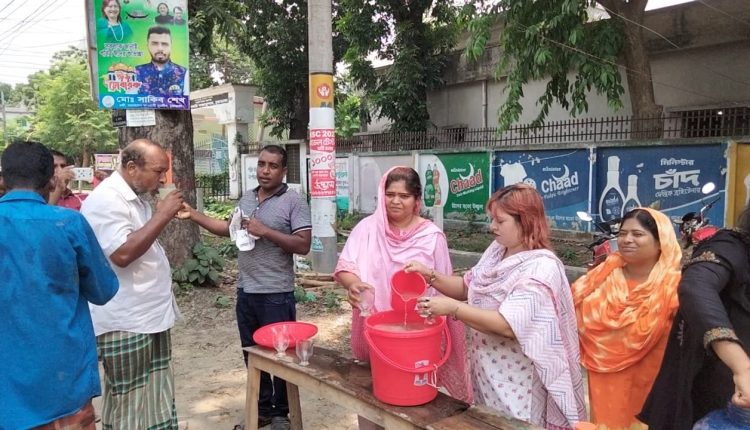 তাপদাহে অতিষ্ঠ পথচারীদের তৃষ্ণা মেটাতে চুয়াডাঙ্গায় যুব মহিলা লীগের শরবত বিতরণ