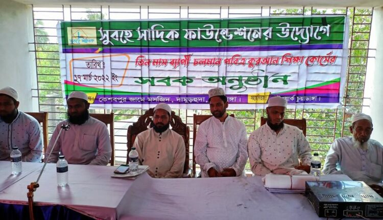 অনুষ্ঠিত হয়। আল কোরআনের আলোয় আলোকিত হওয়া নারীদের কে পুরষ্কার প্রদান করা হয় সংগঠনটির পক্ষ থেকে। সুবহে সাদিক ফাউন্ডেশনের সভাপতি খান হাফিজুর রহমানের সভাপতিত্বে প্রধান অতিথি হিসেবে উপস্থিত ছিলেন মুফতি হামিদুর রহমান খান। এসময় ফাউন্ডেশনের সভাপতি বলেন, আমাদের এই ফাউন্ডেশনের সবচেয়ে বড় অর্জন ২৬০জন নারী পুরুষকে পবিত্র কোরআন শিক্ষার সবক প্রদান করা। সবকপ্রাপ্ত প্রত্যেক নারী শিক্ষার্থীকে পবিত্র কোরআন শরিফ, রেহেল ও একটি করে হিজাব প্রদান করা হয়। অনুষ্ঠানে বিশেষ অতিথি হিসেবে উপস্থিত ছিলেন বিশিষ্ট দায়ী কাজী জালাল আহমেদ, মাওলানা আহমাদুল্লাহ আশরাফ ,মাওলানা আবুজার গেফারী, কেশবপুর জামে মসজিদের ইমাম হাফেজ ইউনুস আলী ,বিশিষ্ট ব্যবসায়ী শিপন আলী, ফাউন্ডেশনের সাধারণ সম্পাদক তারিকুল ইসলাম, ফাউন্ডেশনের উপদেষ্টা মাস্টার ওয়াজেদ আলী,ইউনুস আলী,মুতালেব মল্লিক, মাওলানা হুসাইন খান,তাহাজ মন্ডল, ইনতাজ আলী, অর্থ সম্পাদক বশির আহমেদ, সুলাইমান। এছাড়াও উপস্থিত ছিলেন ফাউন্ডেশনের সদস্য আজিজুল হাকিম, হাদিসুর রহমান খান, আকতার আলী, আবু সাইদ সিফাত, হিরন খান ,রিমন, বখতিয়ার, দুদু মিয়া, জসিম উদ্দিন, আব্দুল বারিক প্রমুখ।