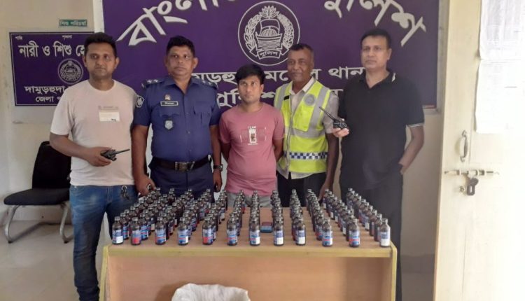 দামুড়হুদা প্রতিনিধি: দামুড়হুদার মোক্তারপুর মোল্লা বাজার থেকে প্লাস্টিকের বস্তাভর্তি (১২০ বোতল) ফেনসিডিলসহ মাদক কারবারি জুয়েল রানাকে আটক করেছে পুলিশ। এ সময় একটি ১৫০সিসির ডাবল ডিক্সের ভারতীয় বাজাজ কোম্পানির পালসার মোটরসাইকেল জব্দ করা হয়। ফেনসিডিলসহ আটককৃত জুয়েল রানা দর্শনা থানাধীন ঝাঁজাডাঙ্গা গ্রামের মাহাবুবুর রহমানের ছেলে। থানা পুলিশ সূত্র জানিয়েছে, গতকাল সোমবার দুপুর সাড়ে ১২টার দিকে গোপন সংবাদের ভিত্তিতে থানার এসআই তোবারক আলী, এসআই মিজানুর রহমান সঙ্গীয় ফোর্স নিয়ে মোক্তারপুর মোল্লা বাজারের দাউদ মোল্লার বাড়ির সামনে পাকা রাস্তার ওপর অভিযান চালায়। এ সময় কার্পাসডাঙ্গা অভিমুখ থেকে আসা একটি লাল-কালো রঙের পালসার মোটরসাইকেলের গতিরোধ করে পুলিশ। এ সময় মোটরসাইকেলের চালক জুয়েল রানা (২৮) কে আটক করে পুলিশ। তার মোটরসাইকেলে থাকা বস্তায় মেলে ১২০ বোতল ফেনসিডিল। এ সময় তাকে আটক করে তার মোটরসাইকেলটি ও ১২০ বোতল ফেনসিডিল জব্দ করা হয়। পরে রাতে আটককৃতর বিরুদ্ধে দামুড়হুদা মডেল থানায় মাদকদ্রব্য নিয়ন্ত্রণ আইনে মামলা দায়ের করা হয়েছে বলে পুলিশের পক্ষ থেকে বলা হয়েছে।