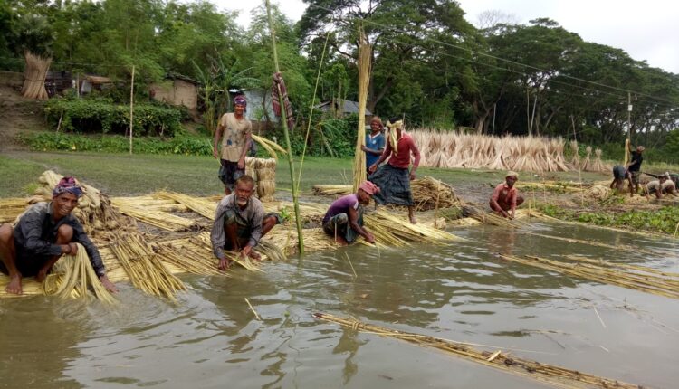 হাসমত আলী: দামুড়হুদা উপজেরায় পাটের ফলন ভালো হলেও বর্তমানে বাজারমূল্য নিয়ে হতাশা প্রকাশ করছেন স্থানীয় চাষিরা। সরেজমিনে দেখা যায়, পাট কাটা, জাগ দেয়া, পাটকাঠি থেকে পাট ছাড়ানো ও শুকানো নিয়ে কিছুটা ব্যস্ত সময় পার করছেন চাষিরা। তবে বর্ষার ভরপুর মৌসুম হওয়ায় প্রয়োজনমত বৃষ্টির পানি না হওয়ায় দুশ্চিন্তায় চাষিরা। পাটের বীজ বপন থেকে শুরু করে আঁশ ছাড়িয়ে বিক্রির জন্য প্রস্তুত করা পর্যন্ত যে খরচ হয় তাতে করে বর্তমান বাজারদরে পাট বিক্রি করলে লোকসানের মুখে পড়তে হবে কৃষকদের। এমনটাই আশঙ্কা করছেন উপজেলার সাধারণ কৃষকরা। দামুড়হুদা কৃষি কর্মকর্তা মনিরুজামান জানান, চলতি বছর দামুড়হুদা উপজেলায় ৭ হাজার ৬শত ৬৩ হেক্টর জমিতে পাটের আবাদ হয়েছে, যা সাম্প্রতিক বছরগুলোর মধ্যে কম। উপজেলার কয়েকটি এলাকায় আগাম পাটের চাষ করায় ইতোমধ্যে বিক্রি শুরু হয়েছে। অনেকের পাট বিক্রির প্রস্তুতি চলছে। অনেক স্থানে পাটের আঁশ ছড়ানোতে ব্যস্ত সময় পার করছেন কৃষকরা। তবে এর মধ্যে হঠাৎ করেই গত দুই সপ্তাহ ধরে পাটের বাজার মূল্য কিছুটা কমে যাওয়ায় হতাশা প্রকাশ করেছেন কৃষকেরা। পাটের ফলন মৌসুমের শুরু থেকে বাজারে দাম ছিল মণ প্রতি তিন হাজার টাকা। এদিকে রেজাউল মাস্টার বলেন, বর্তমানে মণ প্রতি পাট বিক্রি হচ্ছে ২ হাজার ৪শ টাকা। বাজার অনুযায়ী পাটের দাম আরও কমে যেতে পারে বলে ধারণা করছেন কৃষকেরা। স্থানীয় কৃষক মো. জালাল বলেন, পাট ঘরে তুলতে যে খরচ হয় তাতে করে বর্তমান দাম অনুযায়ী বিক্রি করলে খুব একটা লাভ আসে না। কষ্টটাই বৃথা যায়। বাজারে দাম কমে গেলে আমাদের মতো কৃষকেরা ক্ষতির মুখে পড়বে। আমরা ফসল ঘরে তুলে মজুদ করতে পারি না। টাকার জন্য বিক্রি করতেই হয়। মো. নজরুল ইসলাম খোকন নামে অপর এক কৃষক বলেন, শুনতেছি সামনে আরো কমবে পাটের দাম। এবার ৩০/৩৫ জন পাট পেয়েছি। দাম কমতে থাকলে লোকসান গুনতে হবে। কার্পাসডাঙ্গা এলাকার আতিয়ার বলেন, পাটের ফলন ভালো হয়েছে। কিন্তু বাজারে দাম কমে যাওয়ায় বিক্রি করা নিয়ে দ্বিধাদ্বন্দ দেখা দিয়েছে। মজুদ করার মতো জায়গাও নেই আমাদের। দামুড়হুদার উপজেলার বিভিন্ন হাট ঘুরে দেখা গেছে, কৃষকদের একটা অংশ পাট বিক্রি করছেন। তারা জানিয়েছেন, টাকা খরচ করে আবাদ করেছেন। পাট বিক্রি করে প্রয়োজনীয় অন্যান্য কাজ করবেন। কেউ ঋণ করেছেন। এসব চাহিদা মেটানো এবং আগামী ফসলের জন্য জমি প্রস্তুত করতে পাট বিক্রি করতেই হচ্ছে তাদের। তবে পাইকারি ব্যবসায়ীরা দাম কম পেয়ে মজুদ করতে পাট কিনছেন বলেও জানা গেছে। দাম বাড়লে তখন বিক্রি করবেন তারা। উপজেলার অনেক স্থানেই পাট তুলে জমিতে ধানের চাষ শুরু করে দিয়েছেন কৃষকেরা। উঁচু স্থানের জমির পাট কেটে জাগ দেয়া এবং আঁশ ছাড়ানোর কাজ চলছে। দামুড়হ