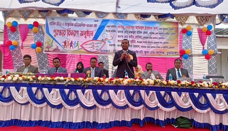 চুয়াডাঙ্গায় বার্ষিক ক্রিড়া ও সাংস্কৃতিক প্রতিযোগিতার পুরষ্কার বিতরণকালে জেলা প্রশাসক