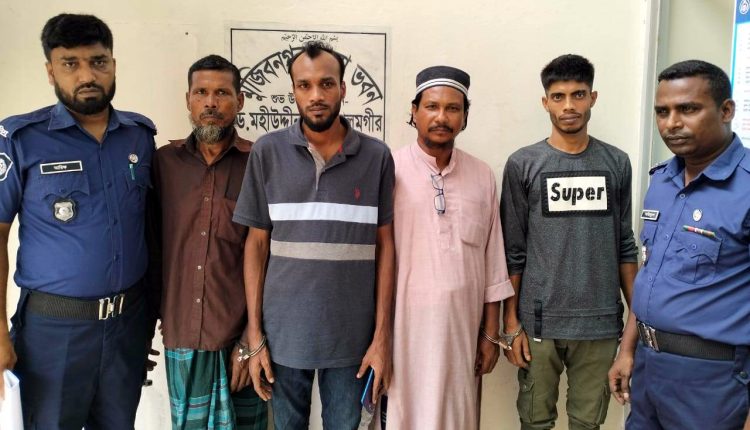 মেহেরপুর অফিস: মুজিবনগরে জামায়াতের ওয়ার্ড বায়তুল মাল সম্পাদক ও জেলা আমিরের ঘনিষ্ট সহযোগী নাশকতা মামলার আসামি তৌফিক মোল্লাকে (৫২) বিশেষ ক্ষমতা আইনের ১৫(৩)/২৫-ডি ধারার মামলায় গ্রেফতার করেছে পুলিশ। গ্রেফতারকৃত তৌফিক মোল্লা মুজিবনগর উপজেলার নাজিরা কোনা গ্রামের জাহান আলী মোল্লার ছেলে। গ্রেফতারকৃত জামায়াত নেতার বিরুদ্ধে পূর্বেও একাধিক মামলা রয়েছে বলে জানিয়েছে মুজিবনগর থানা পুলিশ। মুজিবনগর থানার অফিসার ইন-চার্জ (ওসি) মেহেদী রাসেলের নেতৃত্বে থানার এসআই উত্তম কুমার, এসআই মো. আশিক, এসআই সজীব, এএসআই শাখাওয়াত, এএসআই সীমা খাতুন এবং সঙ্গীয় ফোর্সের সহায়তায় গতকাল বুধবার দিবাগত রাতে মুজিবনগর উপজেলার বিভিন্ন জায়গায় অভিযান পরিচালনা করে আসামিদের গ্রেফতার করে। এছাড়া আদালতের পরোয়ানাভুক্ত অন্য আসামিরা হলেন উপজেলার মোনাখালী গ্রামের কালু শেখের ছেলে চঞ্চল হোসেন (৩৫), রসিকপুর গ্রামের মৃত ছোবহান শেখের ছেলে আবদাল হোসেন (৫০), গোপীনাথপুর গ্রামের মৃত আকছেন আলীর মেয়ে শাহনাজ খাতুন (৩৫), বিশ্বনাথপুর গ্রামের রায়েল বিশ্বাসের ছেলে রুবেল বিশ্বাস (২৫)।