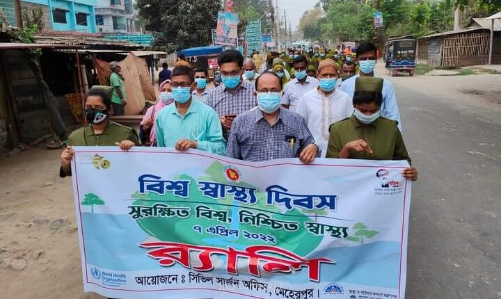এদিকে এর আগে বিশ্বস্বাস্থ্য দিবস উপলক্ষে একটি র্যালি বের করা হয়। সিভিল সার্জন ডা. জওয়াহেরুল আনাম সিদ্দিকীর নেতৃত্বে মেহেরপুর পৌর গেট থেকে শুরু করে র্যালিটি মেহেরপুর সিভিল সার্জন অফিসে গিয়ে শেষ হয়। র্যালিতে অন্যান্যের মধ্যে মেহেরপুর-২৫০ শয্যা বিশিষ্ট জেনারেল হাসপাতালের সুপার ডা. জমির মো. হাসিবুস সাত্তার, মেহেরপুর সদর উপজেলা স্বাস্থ্য ও পরিবার পরিকল্পনা কর্মকর্তা ডা. অলোক কুমার দাস, জেলা পরিবার পরিকল্পনা কর্মকর্তা ডা. প্রসেনজিৎ প্রণয় মিশ্র, মেহেরপুর সদর উপজেলা স্যানিটারি ইন্সপেক্টর তারিকুল ইসলাম, জুনিয়র স্বাস্থ্য শিক্ষা কর্মকর্তা শফিকুল আলম, ইপিআই সুপার আব্দুস সালাম, ব্র্যাকের জেলা প্রতিনিধি ফজলুল হক প্রমুখ উপস্থিত ছিলেন।