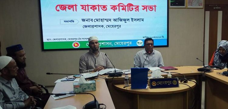 মেহেরপুর অফিস: মেহেরপুর জেলা ইসলামিক ফাউন্ডেশনের উদ্যোগে দারিদ্র বিমোচনে জেলা পর্যায়ে যাকাতের ভূমিকা শীর্ষক সেমিনার ও ২০২২-২০২৩ অর্থবছরে আদায়কৃত যাকাতের টাকা বিতরণে জেলা যাকাত কমিটির সভা অনুষ্ঠিত হয়েছে। গতকাল মঙ্গলবার দুপুরের দিকে মেহেরপুর জেলা প্রশাসকের সম্মেলন কক্ষে দারিদ্র বিমোচনে জেলা পর্যায়ে যাকাতের ভূমিকা শীর্ষক সেমিনার ও ২০২২-২০২৩ অর্থবছরে আদায়কৃত যাকাতের টাকা বিতরণে জেলা যাকাত কমিটির সভা অনুষ্ঠিত হয়েছে। স্থানীয় সরকার বিভাগের উপ-পরিচালক মৃধা মোহাম্মদ মোজাহিদুল ইসলামের সভাপতিত্বে অনুষ্ঠানে বিশেষ অতিথি হিসেবে উপস্থিত ছিলেন অতিরিক্ত জেলা প্রশাসক লিংকন বিশ্বাস। অনুষ্ঠানে মূল প্রতিপাদ্য উপস্থাপন করেন মেহেরপুর জেলা ইমান সমিতির সাধারণ সম্পাদক মো. সিরাজ উদ্দিন। বক্তব্য রাখেন মেহেরপুর জেলা ইসলামিক ফাউন্ডেশনের উপ-পরিচালক একেএম সিরাজুম মুনির, মাও. সাব্বির হোসেন, নুর হোসেন আঙুর প্রমুখ।