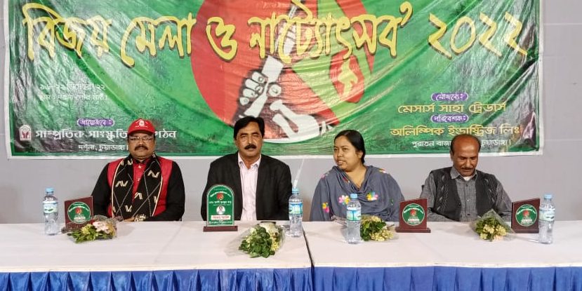 সমাপনি সন্ধ্যায় আলোচনা পর্বে প্রধান অতিথির বক্তব্যে দামুড়হুদা উপজেলা পরিষদের চেয়ারম্যান আলী মুনছুর বাবু বলেন, এবারের সংগ্রাম আমাদের মুক্তির সংগ্রাম, এবারের সংগ্রাম আমাদের স্বাধীনতার সংগ্রাম, জাতীর জনক বঙ্গবন্ধু শেখ মুজিবর রহমানের উদ্যাত্ত আহ্বানে সাড়া দিয়ে ১৯৭১ সালে দীর্ঘ ৯ মাস বিভিশিখাময় পরিস্থিতির মোকাবেলার মাধ্যমে পাক হানাদার বাহিনীকে পরাস্থ করে এ দেশের দামাল ছেলেরা লাখো শহিদের রক্তের বিনিময়ে ছিনিয়ে এনেছিলো আজকের এ বিজয়। ১৯৭১’র ৭ মার্চ জাতীর জনক বঙ্গবন্ধুর অনলবর্ষী ভাষণে সাড়া দিয়ে অগ্নি স্পুলিঙ্গের মতো জ্বলে উঠেছিলো এ দেশের লাখো দামাল ছেলে। এক সাগর রক্ত, ৩০ লাখ প্রাণ ও ২ লাখ মা-বোনের সমভ্রমের বিনিময়ে সারাবিশ্বের বিস্ময় আজকের এ বিজয় গোটা বাঙ্গালী জাতীর মহাগৌরব ও অহঙ্কার। স্বাধীনতার সঠিক ইতিহাসকে যারা অন্যদিকে প্রভাবিত করতে চাই, তারা স্বাধীনতার চরম শত্রু। ওই সব স্বাধীনতা বিরোধী চক্রকে মোকাবেলা করি। এ ধরণের বিজয় মেলা বর্তমান প্রজন্মকে স্বাধীনতার সঠিক ইতিহাস জানার ব্যাপারে ভূমিকা রাখবে। তাই আসুন বিজয়ের চেতনায় জাগ্রত হয়ে স্বাধীনতা বিরোধীদের রুখে দিই। বিশেষ অতিথির বক্তব্যে দামুড়হুদা উপজেলা নির্বাহী অফিসার সানজিদা বেগম বলেন, বঙ্গবন্ধু শেখ মুজিবর রহমানের আহ্বানে ১৯৭১ সালে বীর বাঙ্গালী স্বাধীনতার জন্য ঝাপিয়ে পড়েছিলো পাক হানাদার বাহিনীর বিরুদ্ধে। দীর্ঘ ৯ মাস আমারণ লড়াইয়ের মধ্যদিয়ে পেয়েছিলাম আজকের বিজয়। বঙ্গবন্ধুর জীবনে রয়েছে স্মরণীয় ও বর্ণাঢ্য ইতিহাস। সেই সঠিক ইতিহাস আজকের প্রজন্মকে জানাতে হবে এ ধরণের বিজয় মেলার আয়োজনের মধ্য দিয়ে। বাংলাদেশের স্বাধীনতা আন্দোলনের রূপকার, বাঙ্গালী জাতীর প্রথিকৃত, সর্বকালের সর্বশ্রেষ্ট বাঙ্গালী, জাতীর জনক বঙ্গবন্ধু শেখ মুজিবর রহমানকে যে কুচক্রী মহল সপরিবারে হত্যা করেছিলো, বাংলার মানুষ ওই নরপশুদের ঘৃনাভরে ধিক্কার দেবে অনন্তকাল। সকলকে মনে রাখতে হবে ষোল’র বিজয় আমার ভাইয়ের রক্ত দিয়ে লেখা ইতিহাস। এ ইতিহাস জনম জনমের ইতিহাস। সাম্প্রতিক সাংস্কৃতি সংগঠনের সভাপতি ও দর্শনা রেলবাজার দোকান মালিক সমিতির সভাপতি টিপু সুলতানের সভাপতিত্বে সভায় বিশেষ অতিথি হিসেবে আরো বক্তব্য দেন বীর মুক্তিযোদ্ধা ফজলুল হক। অনুষ্ঠানটি পরিচালনা করেন সাম্প্রতিকের সাধারণ সম্পাদক ও দামুড়হুদা উপজেলা ছাত্রলীগের সভাপতি আরিফুল ইসলাম মল্লিক। সাম্প্রতিকের পক্ষ থেকে দৈনিক মাথাভাঙ্গা পত্রিকাকে বিশেষ সম্মাননা স্মারক দেয়া হয়। দৈনিক মাথাভাঙ্গার পক্ষে স্মারক গ্রহণ করেন দর্শনা ব্যুরো প্রধান হারুন রাজু ও সহকারী ব্যুরো প্রধান হানিফ মন্ডল। সাথে ছিলেন ব্যুরো সহকারী ইয়াছিন জুয়েল। প