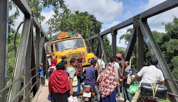 জানাগেছে, আলমডাঙ্গা হাটবোয়ালিয়া মাথাভাঙ্গা ব্রিজটি দীর্ঘদিন ধরে ঝুঁকিপূর্ণ অবস্থায় আছে। যেকোনো সময় বড় ধরনের দূর্ঘটনা ঘটতে পারে। ৩ জুলাই বেলা ১২টার দিকে বালু ভর্তি একটি ট্রাকের চাকা ব্রিজের ষ্টীলের পাত ভেঙে আটকিয়ে যায়। এতে যানচলাচল বন্ধ হয়ে যায় দুপুর ১২টা থেকে সন্ধ্যা ৭টা পর্যন্ত। একারণে ভোগান্তিতে পড়ে হাটবোয়ালিয়া গাংনী বামুন্দী আলমডাঙ্গা এবং চুয়াডাঙ্গা এলাকার সব পরিবহন। গতকাল রোববার দুপুরে হাটবোয়ালিয়া আলমডাঙ্গা সড়কের মাথাভাঙ্গা নদীর বেইলী ব্রীজের উপর এ ঘটনা ঘটে। আলমডাঙ্গা থেকে আসা বালু ভর্তি ট্রাক বেইলী ব্রিজের পশ্চিম পার্শ্বে আসা ষ্টীলের পাত ভেঙ্গে ট্রাকের পিছনের চাকা ভিতরে ঢুকে যায়। এতে দীর্ঘ ৭ ঘন্টা যানচলাচল বন্ধ হয়ে যাওয়ায় চরম দুর্ভোগে পড়েছেন অত্র এলাকার যাত্রীবাহী বাস, ট্রাক, অটো, পূর্ণবাহীসহ সাধারণ মানুষ। হাটবোয়ালিয়ার এ সড়ক দিয়ে প্রত্যেকদিন পরিবহন ট্রাক অটোসহ এই বেইলী ব্রীজের উপর দিয়ে অন্যন্ত ১০০০ হাজার গাড়ী পারাপার হয়। এই বেইলী ব্রিজে ট্রাক আটকিয়ে যাওয়ার কারণে যানচলাচল তো দুরের কথা পায়ে হেটে চলাচল দু:সাধ্য হয়ে যায় এতে চরম ভুগান্তিতে পড়তে হয় হাটবোয়ালিয়া সহ আশপাশের বেশ কয়েকটি গ্রামের মানুষের। তবে এলাকাবাসীর দাবি নতুন ব্রিজ না হওয়া পর্যন্ত যেখানে ভাঙ্গাচুরা আছে সেগুলো তাড়াতাড়ি মেরামত করার দাবি জানান।
