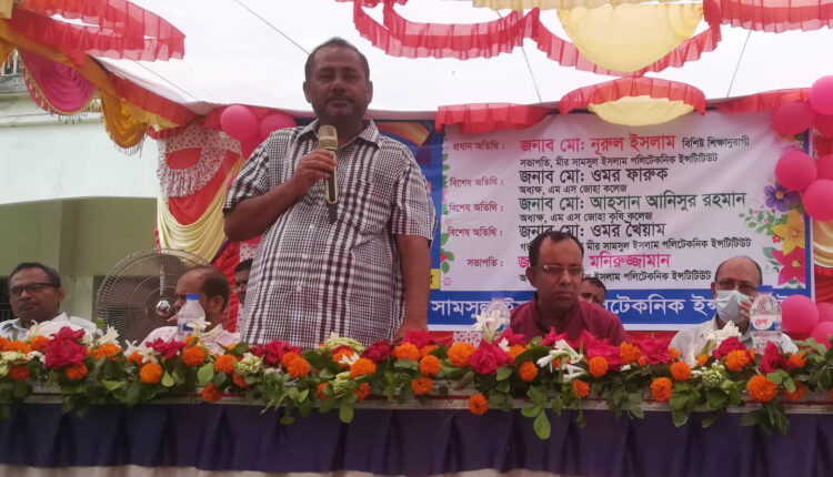 আলমডাঙ্গা ব্যুরো: আলমডাঙ্গার হারদী মীর সামসুল ইসলাম পলিটেকনিক ইনস্টিটিউটের শিক্ষার্থীদের নবীনবরণ জাকজমকপূর্ণ পরিবেশে অনুষ্ঠিত হয়েছে। গতকাল বুধবার বেলা ১১টার দিকে আনন্দঘন পরিবেশে এ নবীনবরণ অনুষ্ঠানের আয়োজন করা হয়। অধ্যক্ষ মো. মনিরুজ্জামানের সভাপতিত্বে অনুষ্ঠানে প্রধান অতিথি ছিলেন বিশিষ্ট শিক্ষানুরাগী ম্যানেজিং কমিটির সভাপতি ও সাবেক ইউপি চেয়ারম্যান নুরুল ইসলাম। এসময় তিনি বলেন, হারদী পলিটেকনিক ইন্সটিটিউট বাংলাদেশ কারিগরি শিক্ষাবোর্ডের অধীন বিভিন্নমুখী শিক্ষা প্রতিষ্ঠান প্রতিষ্ঠার মাধ্যমে এলাকার সন্তানদের জন্য কর্মমুখী শিক্ষার সুবিশাল সুযোগ সৃষ্টি করেছে। এর মাধ্যমে দেশে বিদেশে কর্মক্ষেত্রে বিশাল বাজার খুব সহজেই এলাকার সন্তানরা লুফে নেয়ার সুযোগ পাবে। তিনি সারাদেশের মধ্যে হারদীতে সব ধরনের কর্মমুখী শিক্ষার সবচে বড় শিক্ষা প্রতিষ্ঠান গড়ে তোলার প্রত্যয় ব্যক্ত করেন।
