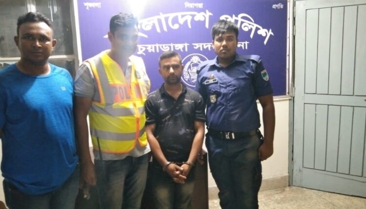 স্টাফ রিপোর্টার: চুয়াডাঙ্গার শহরতলি দৌলতদিয়াড় দক্ষিণপাড়ার হেলাল উদ্দিনকে ইয়াবাসহ আটক করেছে সদর থানা পুলিশ। গতকাল বুধবার দুপুরে দৌলতদিয়াড় বাসস্ট্যান্ড এলাকা থেকে তাকে আটক করা হয়। এ সময় তার কাছ থেকে ৫০ পিস ইয়াবা উদ্ধার করে পুলিশ। এ ঘটনায় গতকালই তার বিরুদ্ধে মাদকদ্রব্য নিয়ন্ত্রণ আইনে মামলা দায়ের করা হয়। আটককৃত হেলাল উদ্দিন (৪০) চুয়াডাঙ্গার শহরতলি দৌলতদিয়াড় দক্ষিণপাড়ার আবুছদ্দিনের ছেলে। পুলিশ জানিয়েছে, গোপন সংবাদের ভিত্তিতে গতকাল বুধবার দুপুরে চুয়াডাঙ্গা সদর থানা পুলিশ জানতে পারে ইয়াবা বিক্রির উদ্দেশ্যে এক ব্যক্তি শহরতলি দৌলতদিয়াড় বাসস্ট্যান্ড এলাকায় অবস্থান করছে। এমন সংবাদের ভিত্তিতে দুপুর পৌনে ৩ টার দিকে সদর থানার এসআই মাসুদ রানা, এএসআই আলী জিন্নাহ, এএসআই আবুল কালাম সঙ্গীয় ফোর্সসহ দৌলতদিয়াড় বাসস্ট্যান্ডে অভিযান চালান। এ সময় পুলিশের উপস্থিতি টের পেয়ে পালানোর সময় আটক করা হয় হেলাল উদ্দিনকে। তার দেহতল্লাাশি করে উদ্ধার করা হয় ৫০ পিস ইয়াবা। এ ঘটনায় গতকালই এসআই মাসুদ রানা বাদী হয়ে মাদকদ্রব্য নিয়ন্ত্রণ আইনে চুয়াডাঙ্গা সদর থানায় একটি মামলা দায়ের করেন। আজ বৃহস্পতিবার হেলাল উদ্দিনকে আদালতে সোপর্দ করা হতে পারে বলে জানায় পুলিশ।