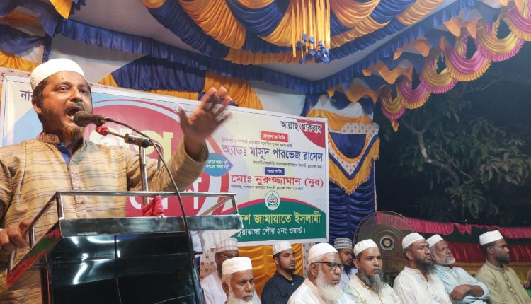 স্টাফ রিপোর্টার: চুয়াডাঙ্গার নিলারমোড়ে জামায়াতের গণসমাবেশ অনুষ্ঠিত হয়েছে। গতকাল শুক্রবার রাত সাড়ে ৯টায় অনুষ্ঠিত সমাবেশে প্রধান অতিথি ছিলেন জেলা সহকারী সেক্রেটারি অ্যাড. মাসুদ পারভেজ রাসেল। তিনি বলেন, জামায়াত একটি ইনসাফ ভিত্তিক দল। সমাজে ইনসাফ কায়েম করতে চাই। জামায়াত এদেশে ইসলামী সমাজ প্রতিষ্ঠিত করতে বদ্ধ পরিকর। তিনি বলেন, পতিত সরকার বিগত দিনে ৯৬ বিলিয়ন ডলার সম্পদ লাপাত্তা করে বিদেশে পাড়ি দিয়েছে। তিনি বলেন ৫৪ বছর দেশ স্বাধীন হলেও সামরিক শক্তিকে পঙ্গু করে রাখা হয়েছে। জামায়াতের নেতারা দুর্নীতি সাথে জড়িত না, চাঁদাবাজির সাথে জড়িত না, মাদকের সাথে জড়িত না। তিনি বলেন যারা দুর্নীতি করে তারা চায় না সমাজে দুর্নীতি বন্ধ হোক। বাংলাদেশকে পরিবারের ভালোবাসতে হবে। তিনি আরও বলেন, যারা খারাপ কাজ করে তারা দুর্বল। জামায়াতের ২নং ওয়ার্ড সভাপতি মাওলানা নুরুজ্জামানের সভাপতিত্বে বিশেষ অতিথি ছিলেন জামায়াতের জেলা ইউনিট সদস্য সিনিয়র আইনজীবী অ্যাড. মসলেম উদ্দিন, জেলা অর্থ সম্পাদক কামাল উদ্দিন ও পৌর জামায়াতের আমির অ্যাড. হাসিবুল ইসলাম। এছাড়াও উপস্থিত ছিলেন পৌর জামায়াতের নায়েবে আমির মাহবুব আশিক, আনোয়ার হোসেন, পৌর সেক্রেটারি মোস্তফা কামাল ও চুয়াডাঙ্গা পৌর শ্রমিক কল্যাণ সভাপতি ইমরান হোসেন প্রমুখ। অনুষ্ঠানটি পরিচালনা করেন ২নং ওয়ার্ড সেক্রেটারি ইমদাদুল হক