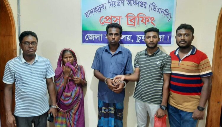 মাদকদ্রব্য নিয়ন্ত্রণ অধিদফতর জানিয়েছে, গতকাল মঙ্গলবার বিকেল সাড়ে চারটার দিকে মাদকদ্রব্য নিয়ন্ত্রণ অধিদফতর চুয়াডাঙ্গা জেলা কার্যালয়ের উপপরিদর্শক আকবর আলী সঙ্গীয় ফোর্সসহ জীবননগর উপজেলার শিয়ালমারি গোহাট এলাকায় অভিযান চালান। এ সময় ৩ লিটার চোলাই মদসহ আটক করা হয় একই উপজেলার নিধিকু- গ্রামের মৃত ইমান আলীর ছেলে কাশেমকে (৩৮)। পরে বিকেল সাড়ে ৫টার দিকে শিয়ালমারি গ্রামের শ্রী দয়াল আদিবাসীর বাড়ি অভিযান চালানো হয়। অভিযানকালে তার স্ত্রী শ্রীমতি রাধারাণীকে (৫২) আটক করা হয়। তার বসতঘর তল্লাশি করে উদ্ধার করা হয় ৫ লিটার চোলাই মদ। গতকালই মাদকদ্রব্য নিয়ন্ত্রণ আইনে মামলাসহ তাদের দুজনকে জীবননগর থানায় সোপর্দ করা হয়।