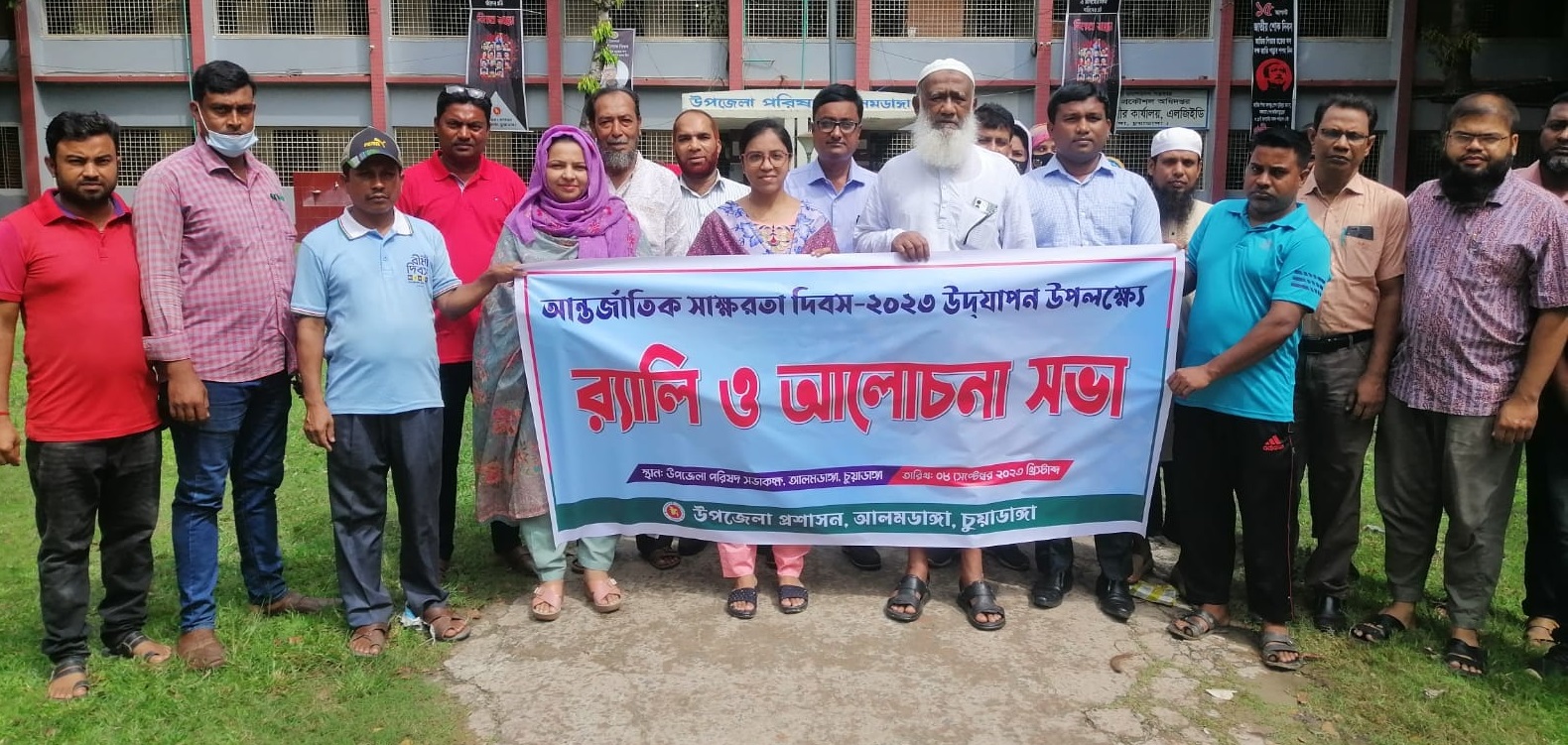 আলমডাঙ্গা ব্যুরো জানিয়েছে, আলমডাঙ্গায় আন্তর্জাতিক সাক্ষরতা দিবস পালিত হয়েছে। গতকাল শুক্রবার উপজেলা প্রশাসনের আয়োজনে দিবসটি পালন উপলক্ষে র্যালি শেষে উপজেলা পরিষদের হলরুমে আলোচনাসভা অনুষ্ঠিত হয়। আলোচনাসভায় উপজেলা নির্বাহী অফিসার ¯িœগ্ধা দাসের সভাপতিত্বে প্রধান অতিথি ছিলেন উপজেলা চেয়ারম্যান আইয়ুব হোসেন। বিশেষ অতিথি ছিলেন উপজেলা সহকারী কমিশনার (ভূমি) রেজওয়ানা নাহিদ, উপজেলা প্রাণিসম্পদ কর্মকর্তা ডা. আব্দুল্লাহিল কাফি, ৭০’র অগ্নিসেনা বীর মুক্তিযোদ্ধা মঈন উদ্দিন পারভেজ, আলমডাঙ্গা সরকারি কলেজের সহকারী অধ্যাপক ড. মাহবুব আলম, উপানুষ্ঠানিক শিক্ষা ব্যুরোর প্রোগ্রাম অফিসার হেদায়েতুল্লাহ। আলমডাঙ্গা কলেজিয়েট স্কুলের উপাধ্যক্ষ শামীম রেজার উপস্থাপনায় উপস্থিত ছিলেন উপজেলা আনসার ভিডিপি কর্মকর্তা আজিজুল হাকীম, আলমডাঙ্গা পাইলট বালিকা বিদ্যালয়ের প্রধান শিক্ষক মনিরুজ্জামান, উপ-সহকারী কৃষি অফিসার খালিদ সাইফুল্লাহসহ উপজেলা প্রশাসনের বিভিন্ন দপ্তরের কর্মকর্তা কর্মচারী ও বিভিন্ন প্রতিষ্ঠানের প্রধান শিক্ষক প্রমুখ।