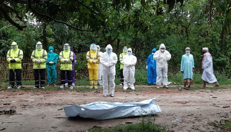 করোনা সুরক্ষা বিধি মেনে ইসলামিক ফাউন্ডেশনের স্থানীয় ঈমাম মৃত আব্দুল কুদ্দুসের জানাযা নামাজ পড়ান।