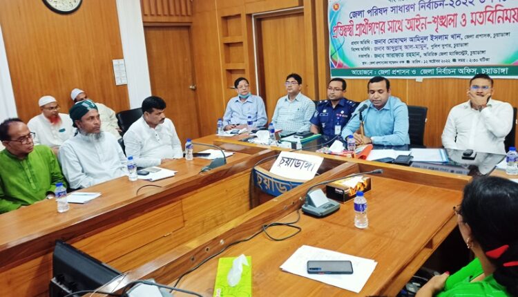 চুয়াডাঙ্গা জেলা পরিষদ নির্বাচনের প্রার্থীদের সাথে আইন-শৃঙ্খলা ও মতবিনিময় সভায় জেলা প্রশাসক