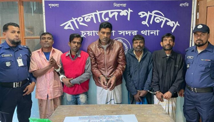 আটককৃতরা হলেন চুয়াডাঙ্গার শহরতলী দৌলতদিয়াড়ের মৃত রমজান আলীর ছেলে আসাদুল হক মিন্টু (৪৮), একই এলাকার মৃত মতলেবের ছেলে তোতা মিয়া (৫০), কাউছার আলীর ছেলে মশিয়ার রহমান (৪০), আজমত আলীর ছেলে ওয়াদুদ শেখ (৫০) ও চুয়াডাঙ্গা শেখপাড়ার মৃত শহীদুল্লাহর ছেলে কামরুল ইসলাম (৫০)।