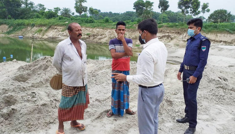 ভ্রাম্যমাণ আদালত সুত্রে জানা গেছে, নিজ জমিতে ড্রেজার দিয়ে বালু উত্তোলন করে পুকুর খনন করে বালু বিক্রি করছে দবির হোসেনসহ কয়েকজন। এতে আশেপাশের জমি ধ্বসের আশংকা দেখা দেয়। খবর পেয়ে সেখানে অভিযান চালিয়ে বালু উত্তোলনের সরঞ্জামসহ দবির উদ্দীনকে আটক করা হয়। বালু মহাল ও মাটি ব্যবস্থাপনা আইন ২০১০ এর ১৫(১) ধারায় তাকে দোষী সাব্যস্ত করে ৫০ হাজার টাকা জরিমানার আদেশ দেয়া হয়। জরিমানা পরিশোধ ও ভবিষ্যতে এ কাজ থেকে বিরত থাকার মুচলেকারয় দবির উদ্দীনকে মুক্তি দেন ভ্রাম্যমাণ আদালত।