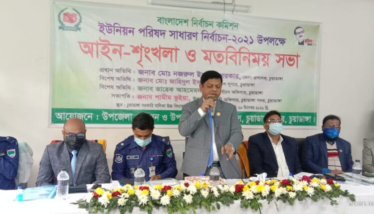 চুয়াডাঙ্গায় ইউপি নির্বাচনের প্রার্থীদের সঙ্গে আইনশৃঙ্খলা বিষয়ক সভায় জেলা প্রশাসক
