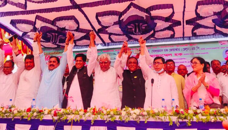 স্টাফ রিপোর্টার: আলমডাঙ্গা উপজেলা আওয়ামী লীগের ত্রি-বার্ষিক সম্মেলন অনুষ্ঠিত হয়েছে। গতকাল সোমবার বেলা ১১টার দিকে সরকারি কলেজ প্রাঙ্গণে এ সম্মেলন অনুষ্ঠিত হয়েছে। প্রথমে পতাকা উত্তোলন ও পায়রা উড়িয়ে সম্মেলনে স‚চনা করা হয়। জেলা আওয়ামী লীগের সভাপতি বীর মুক্তিযোদ্ধা সোলায়মান হক জোয়ার্দ্দার ছেলুন এমপি সম্মেলনের উদ্বোধন ঘোষণা করেন। প্রধান অতিথি ছিলেন বাংলাদেশ আওয়ামী লীগ কেন্দ্রীয় কার্যকরী কমিটির সাংগঠনিক সম্পাদক বিএম মোজাম্মেল হক। প্রধান অতিথির বক্তব্যে বিএম মোজাম্মেল হক বলেন, বার বার ষড়যন্ত্র হয়েছে, সকল ষড়যন্ত্রের বেড়াজাল ছিন্ন করে জাতির জনক বঙ্গবন্ধু শেখ মুজিবর রহমানের নেতৃত্বে আমরা এদেশের স্বাধীনতা অর্জন করেছি। আজকে বঙ্গবন্ধু নেই, বঙ্গবন্ধুর অবর্তমানে তার সুযোগ্য কন্যা জননেত্রী শেখ হাসিনার নেতৃত্বে বঙ্গবন্ধুর সোনার বাংলা গড়ে তোলার স্বপ্ন বাস্তবায়ন করবোই করবো।