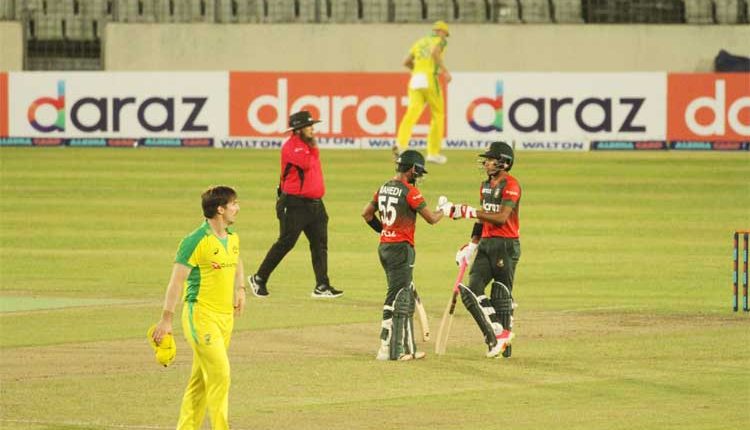 অস্ট্রেলিয়াকে টানা দ্বিতীয়বার হারিয়ে সিরিজ জয়ের দৌড়ে এগিয়ে থাকলো বাংলাদেশ। পাঁচ ম্যাচ সিরিজের দ্বিতীয় ম্যাচে সফরকারী অস্ট্রেলিয়াকে ৫ উইকেটে হারায় টাইগাররা। এই জয়ে সিরিজে ২-০তে এগিয়ে থাকলো বাংলাদেশ। শুক্রবার তৃতীয় ম্যাচটিতে জিতলেই সিরিজ জয় নিশ্চিত হবে লাল-সবুজদের। সিরিজের প্রথম ম্যাচে অস্ট্রেলিয়াকে ২৩ রানে হারিয়ে শুভসূচনা করেছিল বাংলাদেশ।