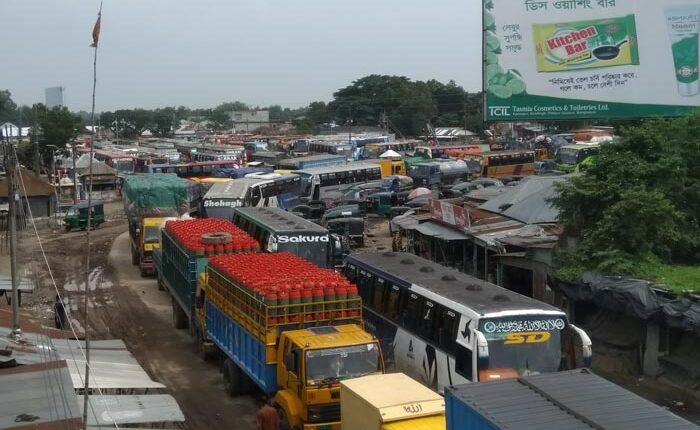 স্টাফ রিপোর্টার: পদ্মা-যমুনা নদীতে পানি বৃদ্ধি পেয়ে তীব্র স্রোতের সৃষ্টি হয়েছে। এতে গত কয়েক দিন ধরে দেশের ব্যস্ততম দৌলতদিয়া-পাটুরিয়া নৌরুটে ফেরি চলাচল ব্যাহত হচ্ছে। এছাড়া রুটের ২টি ফেরি মেরামতে থাকা, ২টি অন্য রুটে সরিয়ে নেওয়া এবং ছোট ৬টি ইউটিলিটি ফেরি তীব্র স্রোতের বিপরীতে স্বাভাবিকভাবে চলতে না পারায় দৌলতদিয়া ও পাটুরিয়া ঘাট প্রান্তে আটকা পড়েছে শতাধিক যানবাহন। উভয় পাড়ে মহাসড়কে সৃষ্টি হয়েছে ৪-৫ কিলোমিটারজুড়ে যানবাহনের দীর্ঘসারি। এতে করে আটকে থাকা যানবাহনের যাত্রী ও চালকরা প্রচ- ভোগান্তির শিকার হচ্ছেন। আটকে থাকা পণ্যবাহী ট্রাক চালকরা ৮-১০ ঘণ্টায়ও ফেরির নাগাল পাচ্ছেন না বলে অভিযোগ করেন। সরেজমিন (১৯ জুন) রোববার দুপুরের দিকে দেখা যায়, দৌলতদিয়া ফেরিঘাটের জিরো পয়েন্ট থেকে মহাসড়কের গোয়ালন্দ ফায়ার সার্ভিস স্টেশন পর্যন্ত প্রায় ৪ কিলোমিটার জুড়ে যানবাহনের দীর্ঘ সারি সৃষ্টি হয়ে আছে। এর মধ্যে পণ্যবাহী ট্রাক ও কাভার্ডভ্যানের সংখ্যাই বেশি। এর সংখ্যা ৫ শতাধিক হবে বলে ভুক্তভোগীরা জানান। এর মধ্যে অনেকেই শনিবার মাঝ রাত থেকে দীর্ঘ যানজটে আটকে আছেন। তারা খাওয়া-দাওয়া, গোসল, টয়লেট ব্যবহার, নামাজ আদায়সহ বিভিন্ন সমস্যার কথা জানান। পাটুরিয়া প্রান্তেও একইভাবে ৪-৫ কিলোমিটার যানজটে ৫ শতাধিক বিভিন্ন যানবাহন আটকা পড়েছে বলে সংশ্লিষ্টরা জানান। বেনাপোল সীমান্ত থেকে ছেড়ে আসা কাভার্ডভ্যান চালক জুনায়েদ শেখ বলেন, রোববার ভোর রাত ৩টার দিকে এসে সিরিয়ালে আটকে পড়ি। বাথরুম ও খাবার পানির সমস্যায় আছি। গাড়ি থেকে নেমে বাইরে যাওয়াটাও ঝুঁকিপূর্ণ। একই কথা বললেন ট্রাক চালক বাচ্চু, আকাশ, জুলফিকারসহ অনেকেই।