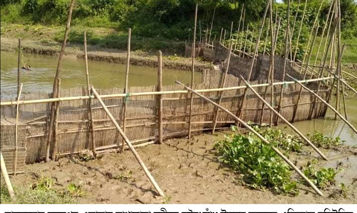 দামুড়হুদা ব্যুরো: দামুড়হুদায় মাথাভাঙ্গা নদীতে চোখ রাখলেই দেখা মিলবে অসংখ্য কোমড় আর অবৈধ বাঁধ। ফলে বাঁধাগ্রস্ত হচ্ছে নদীর স্বাভাবিক প্রবাহ। কিছু অসাধু ব্যক্তি শত শত কোমড় আর বাঁশের তৈরি বাঁধ নির্মাণ করে নদীর ¯্রােতকে বাধাঁগ্রস্ত করছে। চিকন সুতোর ফাঁদ পেতে শিকার করা হচ্ছে ছোটবড় সব ধরনের প্রাকৃতিক মাছ। উপজেলার বিভিন্ন স্থান ঘুরে এমন চিত্রই দেখা গেছে। সম্প্রতি দামুড়হুদার সুবলপুর ঘাটের অদূরে মাথাভাঙ্গা নদীর বুকে বিশাল এক বাঁধ নির্মাণ করে কয়েক অসাধু ব্যক্তি। এছাড়া দামুড়হুদা পুরাতন বাজারের নিচে, কেশবপুর বাঁকে, পুরাতন বাস্তপুরে, এবং সীমান্তবর্তী কামারপাড়ায় মাথাভাঙ্গা নদীতে নির্মাণ করা হয়েছে বেশকিছু অবৈধবাঁধ। বিষয়টি জানার পর দামুড়হুদা উপজেলা সহকারী কমিশনার (ভূমি) মো. মহিউদ্দিন সুবলপুর ব্রিজের অদূরে নির্মাণ করা অবৈধ বাঁধটি অপসারণ করেন। তিনি জানান, নদীর স্বাভাবিক প্রবাহ রক্ষা করতে অবৈধভাবে নির্মিত বাঁধটি অপসারণ করা হয়েছে। তবে বাঁধ নির্মাণকারীদের পাওয়া যায়নি। এ ধরনের জনবিরোধী কার্যক্রম থেকে এলাকাবাসীকে বিরত থাকার অনুরোধ জানিয়ে তিনি বলেন, পরবর্তীতে এ ধরনের অবৈধ বাঁধ নির্মাণ করলে সংশ্লিষ্টদের বিরুদ্ধে আইনগত কঠোর ব্যবস্থা গ্রহণ করা হবে।