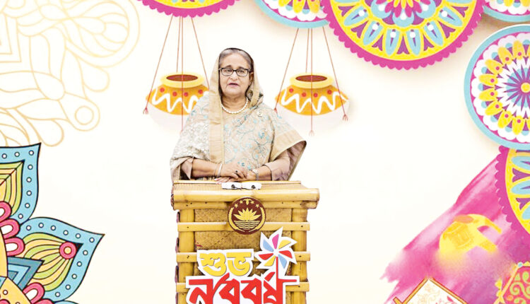 স্টাফ রিপোর্টার: সবাইকে বাঙালির সর্বজনীন উৎসব নববর্ষের শুভেচ্ছা ও ধর্মীয় বিভেদমুক্ত দেশ গড়ার আহ্বান জানিয়ে প্রধানমন্ত্রী শেখ হাসিনা বলেছেন, ‘বাঙালি জাতীয়তাবাদের অসাম্প্রদায়িক চেতনায় স্নাত হয়ে আসুন বাংলাদেশকে একটি সুখী-সমৃদ্ধ সোনার বাংলাদেশ হিসেবে গড়ে তুলি। যেখানে বৈষম্য থাকবে না, মানুষে মানুষে থাকবে না কোনো ভেদাভেদ, থাকবে না ধর্মে-ধর্মে কোনো বিভেদ। পারস্পরিক সৌহার্দ্য আর ভ্রাতৃত্বের বন্ধনে আবদ্ধ হয়ে আসুন বাংলাদেশকে বিশ্বের বুকে একটি উন্নত-সমৃদ্ধ সোনার বাংলা হিসেবে প্রতিষ্ঠিত করি।’ বঙ্গাব্দ ১৪২৯ উপলক্ষে দেশবাসীকে শুভেচ্ছা জানাতে বুধবার জাতির উদ্দেশে দেওয়া ভাষণে এমন আহ্বান জানান প্রধানমন্ত্রী শেখ হাসিনা। এই ভাষণ রেডিও ও টেলিভিশনে সরাসরি সম্প্রচার হয়। ভাষণের শুরুতেই প্রধানমন্ত্রী শেখ হাসিনা সবাইকে শুভেচ্ছা জানিয়ে বলেন, ‘জাগতিক নিয়মের পথ-পরিক্রমায় বছর শেষে আমাদের মধ্যে আবার এসেছে নতুন বছর- ১৪২৯ বঙ্গাব্দ। সবাইকে নতুন বছরের আন্তরিক শুভেচ্ছা। শুভ নববর্ষ।’ করোনাভাইরাস মহামারির কারণে গত দুই বছর বর্ষবরণের আয়োজন করতে না পারার কথা বলার পাশাপাশি এবার উৎসবে শামিল হলেও স্বাস্থ্যবিধি মেনে চলার পরামর্শ দেন তিনি। তিনি বলেন, ‘করোনাভাইরাস একেবারে নির্মূল হয়নি। নতুন রূপে করোনাভাইরাস আবার যে কোনো সময় যে কোনো দেশে ছড়িয়ে পড়তে পারে। আমি সকলকে স্বাস্থ্যবিধি মেনে এসব অনুষ্ঠানে যোগদানের জন্য আহ্বান জানাচ্ছি।’ জনগণকে এই মহামারি থেকে সুরক্ষিত রাখতে সরকার সচেষ্ট জানিয়ে সরকারপ্রধান বলেন, ‘ইতোমধ্যে প্রায় ৯০ শতাংশ টিকা পাওয়ার যোগ্য মানুষকে টিকা দেওয়া হয়েছে। টিকা প্রদান অব্যাহত রয়েছে। দ্বিতীয় ডোজের পর এখন বুস্টার ডোজ দেয়া হচ্ছে।’ আবহমানকাল ধরে বাঙালির পহেলা বৈশাখ উদযাপনের ইতিহাস তুলে ধরে তিনি বলেন, ‘বিভিন্ন ধর্মে-বর্ণে বিভক্ত হলেও ঐতিহ্য ও কৃষ্টির জায়গায় সব বাঙালি এক এবং অভিন্ন। নানা ঘাত-প্রতিঘাতে অনেক ঐতিহ্য হারিয়ে গেলেও পয়লা বৈশাখে নববর্ষ উদযাপন এখনও স্ব-মহিমায় টিকে আছে। সারা বছরের ক্লেদ-গস্নানি, হতাশা ভুলে এদিন সব বাঙালি নতুন আনন্দ-উদ্দীপনায় মেতে ওঠেন।’ শেখ হাসিনা বলেন, ‘বাঙালির মুখের ভাষা, সংস্কৃতি এবং ঐতিহ্যকে উপজীব্য করেই জাতির পিতা বঙ্গবন্ধু শেখ মুজিবুর রহমানের নেতৃত্বে অসাম্প্রদায়িক বাঙালি জাতীয়তাবাদের বিকাশ ঘটেছিল। যার উপর ভিত্তি করে বঙ্গবন্ধুর নেতৃত্বে ২৩ বছরের রাজনৈতিক সংগ্রাম এবং ৯ মাসের মুক্তিযুদ্ধের মধ্য দিয়ে অর্জিত হয়েছে স্বাধীন-সার্বভৌম বাংলাদেশ। কাজেই আমাদের ভাষা, সংস্কৃতি, কৃষ্টি এবং ঐতিহ্যকে অস্বীকার করা মানে আমাদের স্বাধীনতাকেই অস্বীকার করা।’