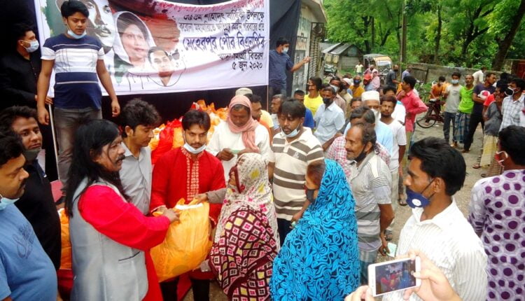 মেহেরপুর অফিস: শহীদ রাষ্ট্রপতি জিয়াউর রহমানের ৩৯তম শাহাদতবার্ষিকী উপলক্ষে চলমান করোনা মহামারীতে ক্ষতিগ্রস্থ ও কর্মহীন ৪০০টি পরিবারের মাঝে মেহেরপুর পৌর বিএনপির উদ্যোগে খাদ্য সামগ্রী বিতরণ করা হয়েছে। এ উপলক্ষে গতকাল শুক্রবার সকালে জেলা বিএনপি’র কার্যালয়ের সামনে খাদ্য সামগ্রী বিতরণ করেন মেহেরপুর জেলা বিএনপির সভাপতি মেহেরপুর-১ আসনের সাবেক সংসদ সদস্য মাসুদ অরুন। এসময় উপস্থিত ছিলেন মেহেরপুর পৌর বিএনপির সভাপতি জাহাঙ্গীর বিশ্বাস, জেলা বিএনপির সাংগঠনিক সম্পাদক আব্দুর রশিদ, যুগ্ম-সম্পাদক আব্দুর রহিম, আরজুল্লাহ মাস্টার বাবলু, সদর উপজেলা বিএনপির সাংগঠনিক সম্পাদক শাহাবুদ্দিন মোল্লা, জেলা বিএনপির অন্যতম নেতা শাহজাহান সাহান, পৌর বিএনপির যুগ্ম-সম্পাদক মনিরুল ইসলাম, হাফিজুর রহমান হাফি, মেহেরপুর জেলা যুবদলের সহ-সভাপতি মুশারফ হোসেন তপু, সহ-সভাপতি মুশারফ হোসেন তপু, যুগ্ম-সম্পাদক সাইদুর রহমান সুজন, নওশেল আহামেদ রনি, যুবদল নেতা মো. রাজিব শেখ, মুজিবনগর উপজেলা যুবদলের যুগ্ম-আহবায়ক খোরশেদ আলম দুখু, জেলা ছাত্রদলের সাধারণ সম্পাদক আলমগীর হোসেন, সাংগঠনিক সম্পাদক সাঈদ বিন রফিক সিজার, সদর উপজেলা ছাত্রদলের আহবায়ক বখতিয়ার হোসেন বুলবুল, সদস্য সচিব শেখ রাসিদুল ইসলাম রাজন, মুজিবনগর উপজেলা ছাত্রদলের আহবায়ক আকিব জাভেদ সেনজির, সদস্য সচিব আফিরুল ইসলাম প্রমুখ।