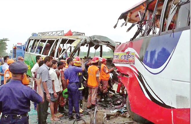 স্টাফ রিপোর্টার: রংপুরের তারাগঞ্জে দুই বাসের সংঘর্ষে নিহতের সংখ্যা বেড়ে ১০ জনে দাঁড়িয়েছে। গত রোববার রাত সাড়ে ১২টার দিকে রংপুর-দিনাজপুর মহাসড়কে উপজেলার খারুভাজ সেতুর কাছে এ দুর্ঘটনা ঘটে। দুর্ঘটনাকবলিত বাসে থাকা যাত্রীদের অভিযোগ-ঘটনার আগে হেলপারের সঙ্গে গাঁজা সেবন করে বেপরোয়া গতিতে বাস চালাচ্ছিলেন চালক। এ কারণে দুর্ঘটনা ঘটেছে। এ ঘটনায় ৩ সদস্যের তদন্ত কমিটি গঠন করা হয়েছে। নিহতদের পরিবারকে ২০ হাজার টাকা করে দেয়ার আশ্বাস দিয়েছে জেলা প্রশাসন। রোববার রাত সাড়ে ১২টার দিকে রংপুর-দিনাজপুর সড়কের তারাগঞ্জ উপজেলার খারুভাজ সেতু এলাকায় দুই বাসের মুখোমুখি সংঘর্ষে নিহতের সংখ্যা বেড়ে ১০ জনে দাঁড়িয়েছে। এতে আহত হয়েছে অর্ধশতাধিক যাত্রী। তাদের রংপুর মেডিকেল কলেজ (রমেক) হাসপাতালসহ আশপাশের বিভিন্ন সরকারি বেসরকারি হাসপাতালে ভর্তি করা হয়েছে।