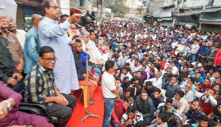 স্টাফ রিপোর্টার: বিএনপির ভাইস চেয়ারম্যান শামসুজ্জামান দুদু বলেছেন, ‘দমন-নিপীড়ন চালিয়ে লুটেরা সরকার, নিশিরাতের সরকার, ভোট ডাকাত সরকারের শেষ রক্ষা হবে না। ডিসেম্বর মাস ঐতিহ্যের মাস, এ মাসে হানাদার বাহিনীকে হটিয়ে বাংলার আকাশে লাল সবুজের পতাকা উড়িয়েছি। এই মাসে জাতি বিজয় অর্জন করেছে। এই মাসেই লুটেরা, টাকা পাচারকারী সরকারের পতন হবে।’ গতকাল বুধবার খুলনার কে ডি ঘোষ রোডের বিএনপি কার্যালয়ের সামনে এক বিক্ষোভ সমাবেশে প্রধান অতিথির বক্তব্যে তিনি এসব কথা বলেন। শামসুজ্জামান বলেন, ‘ভয়ভীতি দেখিয়ে ১০ ডিসেম্বরের সমাবেশ বন্ধ করা যাবে না। মামলা-হামলার ভয় এ দেশের মানুষ পায় না, তারা জেগে উঠেছে। শেখ হাসিনা সরকারের পতন ঘটিয়ে বেগম খালেদা জিয়াকে মুক্ত করে এবং আগামী দিনের কান্ডারি তারেক রহমানকে দেশে ফিরিয়ে এনে আমরা ঘরে ফিরবো।’ বিএনপিসহ বিরোধীদলীয় নেতা-কর্মীদের বিরুদ্ধে বানোয়াট মামলা দায়ের, গ্রেফতার ও কারান্তরীণের পাশাপাশি শাসকগোষ্ঠী দমন-পীড়ন অব্যাহত রেখেছে বলে অভিযোগ করে শামসুজ্জামান দুদু বলেন, ‘বর্তমান অবৈধ সরকারের ভয়াবহ দুঃশাসন ও অনাচারের করাল গ্রাস থেকে এখনই দেশকে মুক্ত করতে দলমত-নির্বিশেষে সবাইকে ঐক্যবদ্ধভাবে এগিয়ে আসতে হবে। বিএনপির আমলে চালের কেজি ছিলো ১৬ টাকা। অবৈধ সরকার বলেছিলো ১০ টাকায় চাল দেবে কিন্তু মিথ্যাবাদী সরকার সে কথা রাখেনি। দ্রব্যমূল্য কমানোর দাবিতে যে আন্দোলন হয়েছে, সেই আন্দোলনকারীদের ১০ জন নেতা-কর্মীকে সরকার গুলি করে হত্যা করেছে। আমরা এ হত্যার বিচার দাবি করছি না। জনগণের সরকার একদিন প্রতিটি হত্যাকা-ের বিচার করবে।’ সমাবেশে কেন্দ্রীয় ছাত্রদলের সাবেক সভাপতি ও বিএনপির জাতীয় নির্বাহী কমিটির তথ্য সম্পাদক আজিজুল বারী বলেন, মাফিয়া সরকারের সময় শেষ হয়ে গেছে। বাংলার সাধারণ জনগণ জেগে উঠেছে। মামলার ভয় দেখিয়ে লাভ নেই। গুটিকয়েক পুলিশ সদস্য গায়েবি মামলা দিচ্ছেন। সময় সবকিছুর জবাব দেবে। তিনি আরও বলেন, ১০ ডিসেম্বর ২৫ লাখ মানুষের সমাবেশ হবে। সেই সমাবেশ থেকে সরকারকে বিদায় করতে এক দফার আন্দোলনের ডাক আসবে। সব দুর্নীতি, অনিয়মের বিচারের মুখোমুখি হতে হবে সরকারকে। সেদিন আর বেশি দূরে নয়, যেদিন কাঠগড়ায় তাদের দাঁড়াতে হবে। খুলনা মহানগর বিএনপির আহ্বায়ক শফিকুল আলম সমাবেশে সভাপতিত্ব করেন। মহানগর বিএনপির যুগ্ম আহ্বায়ক মাসুদ পারভেজ ও শেখ সাদীর সঞ্চালনায় সমাবেশে বক্তৃতা করেন খুলনা জেলা বিএনপির আহ্বায়ক আমীর এজাজ খান, মহানগর বিএনপির সদস্যসচিব শফিকুল আলম, জেলা বিএনপির সদস্যসচিব মনিরুল হাসান, বিএনপি নেতা আবু হোসেন, জুলফিকার আলী, স ম আব্দুর রহমান, সৈয়দা রেহেনা, এসএ রহমান, মোল্লা খায়রুল ইসলাম, কাজী মাহমুদ আলী, মোস্তফাউ