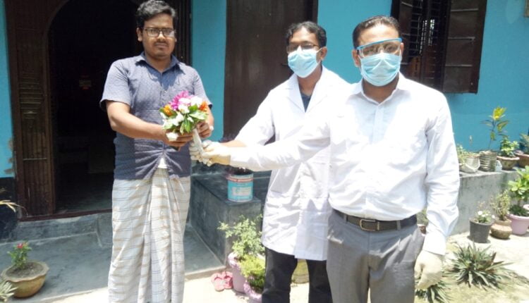 মুজিবনগর প্রতিনিধি: সুস্থ হয়ে স্বাভাবিক জীবনে ফিরলেন মেহেরপুর জেলায় মুজিবনগর উপজেলার প্রথম করোনা ভাইরাস আক্রান্ত জাহাঙ্গীর আলম। ২২ এপ্রিল প্রথম করোনা আক্রান্ত ব্যক্তি হিসেবে তাকে হোম আইসোলেশনে রাখা হয়। জাহাঙ্গীর আলম ব্র্যাক যক্ষা কর্মসূচির কর্মকর্তা। তিনি মুজিবনগর উপজেলার বল্লভপুর গ্রামের একটি বাড়িতে ভাড়ায় থাকেন। গতকাল শনিবার (১৬ মে) দুপুরে উপজেলা স্বাস্থ্য বিভাগ আনুষ্ঠানিকভাবে তাকে সুস্থ ঘোষণা করে। জাহাঙ্গীর আলমের বাসভবনে গিয়ে ফুলেল শুভেচ্ছা জ্ঞাপন করেন মুজিবনগর উপজেলা নির্বাহী অফিসার মো. উসমান গনি, উপজেলা স্বাস্থ্য ও পরিবার পরিকল্পনা কর্মকর্তা ডা. রেজওয়ান আহম্মেদ। করোনা ভাইরাস বিজয়ী জাহাঙ্গীর আলম বলেন, ১৪ দিন ধরে হোম আইসোলেশনে সব নিয়ম মেনে অপেক্ষা করেছি। সর্দি সারতে গরম পানি, লবঙ্গ ও আদার ভাপ নিয়েছি নাকে। তাছাড়া তেমন কোনো চিকিৎসার প্রয়োজন হয়নি। আমি সুস্থ হবোই এমন দৃঢ় মনোবল ও আস্থা রাখা সবচেয়ে বড় চিকিৎসা উল্লেখ করে তিনি বলেন, আমার পরিবার আমার পাশে ছিলো। মানসিকভাবে শক্ত থাকতে অনেকে আমায় উৎসাহ জুগিয়েছেন।