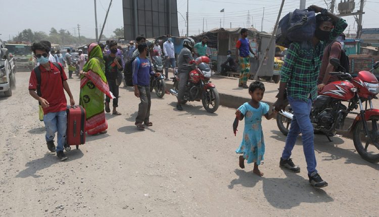 কেউ রিকশা ভ্যানে, কেউ-বা পায়ে হেঁটে ছুটছেন গন্তব্যে। রাজধানীর অন্যতম প্রবেশমুখ গাবতলী বাস টার্মিনালসংলগ্ন আমিনবাজার ব্রিজ। জানা যায়, সকাল থেকেই বাড়ে বাড়িফেরা যাত্রীদের চাপ। যাত্রীরা জানান, আটকে পড়ার আশঙ্কায় ঢাকা ছাড়ছেন তারা। গাবতলী এলাকায় সকাল থেকেই যাত্রীদের চাপ অন্যদিনের তুলনায় কিছুটা বেশি দেখা গেছে। ঝুঁকি নিয়ে বাড়ি ফেরা যাত্রীদের বেশির ভাগের মুখেই ছিলো না মাস্ক। মানা হচ্ছিল না কোনো রকম স্বাস্থ্যবিধিও। তবে তারা অভিযোগ করেছেন বাড়তি ভাড়া ও ভোগান্তি নিয়ে। এমন সময় কেন বাড়ি যাচ্ছেন, এমন প্রশ্নে তারা জানান, লকডাউনে ঢাকায় যাতে আটকা না পড়েন সে জন্যই তারা গ্রামে চলে যাচ্ছেন। বাগেরহাটের উদ্দেশে রওয়ানা হওয়া এক যাত্রী বলেন, তিনি একজন ক্ষুদ্র ব্যবসায়ী। লকডাউনের কারণে দোকান বন্ধ। সে কারণেই বাড়ি যাচ্ছেন। আরেক যাত্রী বলেন, বাড়িতে আগে থেকেই জরুরি কাজ ছিলো, সেজন্য বাধ্য হয়ে ট্রাকে করে বাড়ি যাচ্ছেন। যদিও ভাড়া অনেক বেশি নিচ্ছে, কষ্টও হচ্ছে অনেক।