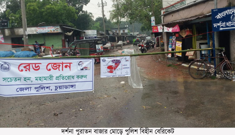এলাকাবাসীর অভিযোগে জানা গেছে, ২৬ মে দর্শনা থানায় প্রথম করোনা আক্রান্ত হলেও ১৯ জুনে চুয়াডাঙ্গা জেলা প্রশাসকের বৈঠকে দর্শনা পৌরসভার ৫ ও ৭নং ওয়ার্ডকে রেড জোন হিসেবে চিহ্নিত করা হয়। ওই দুটি ওয়ার্ডের থানাপাড়া ও রিফুজিকলোনী এলাকাকে লকডাউন ঘোষণা করা হলেও ২/৩ দিন তা পরিপূর্ণ বলবৎ ছিলো। পুলিশি কঠোর অবস্থান, ৭টি পয়েন্টে পুলিশি চৌকি, মহল্লার প্রবেশ দ্বারে বাঁশের ব্যারিকেট, লকডাউন সংবলিত ব্যানার ও ম্যাপের দৃশ্য ছিলো চোখে পড়ার মতো। ২/৩ দিন যেখানকার পানি সেখানেই গড়িয়েছে। পুলিশি চৌকি ও ভূমিকা যেমন দেখা মেলেনি, তেমনিভাবে বাঁশের ব্যারিকেট ও ব্যানার কোথায় হারিয়েছে তা যেন খুজে পাওয়া মুশকিল। তবে ২/১টি পয়েন্টে বাঁশের ব্যারিকেট থাকলেও তা সরিয়ে অবাধে যাতায়াত করছেন পথচারীরা। রাতারাতি দর্শনা বাসস্ট্যান্ড এলাকায় করোনা আক্রান্তের সংখ্যা বৃদ্ধি পাওয়ায় ২৪ জুন পৌরসভার ২নং ওয়ার্ডকে রেড জোন হিসেবে চিহ্নিত করে বাসস্ট্যান্ডপাড়াকে লকডাউনের আওতায় আনা হয়। সেখানেও পুলিশের ভূমিকা দেখা গেছে ২/১ দিন। দর্শনা পৌরসভার বৈঠকে করোনা আক্রান্ত পরিবারগুলোকে সহায়তা ও করোনা প্রতিরোধ কমিটি গঠন করা হয়। সে মোতাবেক পৌরসভা থেকে করোনা আক্রান্ত পরিবারগুলোকে সহায়তা চলমান রেখেছে। এছাড়া চুয়াডাঙ্গা-২ আসনের সংসদ সদস্য হাজি আলী আজগার টগর, জেলা প্রশাসক নজরুল ইসলাম সরকার, পুলিশ সুপার জাহিদুল ইসলাম, দামুড়হুদা উপজেলা পরিষদের চেয়ারম্যান আলী মুনছুর বাবু, উপজেলা নির্বাহী অফিসার দিলারা রহমান, পৌর মেয়র মতিয়ার রহমান, জেলা বিএনপির অন্যতম নেতা হাজি মোখলেসুর রহমান তরফদার টিপু করোনা আক্রান্ত পরিবারের মধ্যে খাদ্য সামগ্রী বিতরণ করেছেন। সচেতন মহল অভিমত ব্যক্ত করে বলেছেন, দর্শনাবাসী কোনোভাবেই সরকারি স্বাস্থ্যবিধি মেনে চলছে না। সরকারি বিধি নিষেধ অমান্য করে স্বাভাবিক নিয়মেই অবাধে যেমন খোলা থাকছে দোকানপাট, তেমনি মানুষের চলাচলেও নেই নিরাপদ দূরত্ব। ফলে যতোই দিন যাচ্ছে, ততোই করোনা আক্রান্তের সংখ্যা বাড়ছে। এমনভাবে চলতে থাকলে দর্শনায় করোনা ভাইরাস মহামারী আকার ধারণ করতে পারে। তাই নিজেদের স্বার্থে হলেও এখনি প্রশাসনকে কঠোর অবস্থান গ্রহণে জেলা প্রশাসক ও পুলিশ সুপারের কাছে জোর দাবি তুলেছে দর্শনাবাসী।