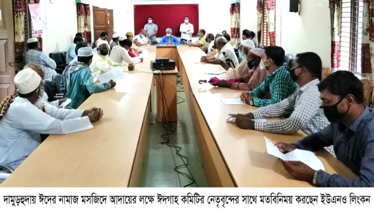 দামুড়হুদা ব্যুরো : দামুড়হুদায় স্বাস্থ্যবিধি মেনে পবিত্র ঈদুল ফিতরের নামাজ মসজিদে আদায়ের লক্ষে ঈদগাহ কমিটির নেতৃবৃন্দ ও ধর্মীয় নেতাদের সাথে মতবিনিময় করা হয়েছে। গতকাল বুধবার দামুড়হুদা উপজেলা পরিষদ সভাকক্ষে উপজেলা প্রশাসনের উদ্যোগে ওই মতবিনিময়সভা অনুষ্ঠিত হয়। দামুড়হুদা উপজেলা নির্বাহী অফিসার এসএম মুনিম লিংকনের সভাপতিত্বে অনুষ্ঠিত মতবিনিময়সভায় উপস্থিত ছিলেন দামুড়হুদা মডেল থানার ওসি (অপারেশনস) মো: সামসুদ্দোহা, উপজেলা প্রশাসনিক কর্মকর্তা মো: জিন্নাত আলী, দামুড়হুদা বেগোপাড়া ঈদগাহ কমিটির সভাপতি আশরাফুল আলম, দশমী ঈদগাহ কমিটির সাধারণ সম্পাদক বশীর আহমেদ, সাংবাদিক বখতিয়ার হোসেন বকুল, দামুড়হুদা ডিএস দাখিল মাদরাসা ঈদগা কমিটির সভাপতি জয়নাল আবেদীন, কার্পাসডাঙ্গা ঈদগা কমিটির সভাপতি আব্দুল কাদের বিশ্বাস, কুনিয়া ঈদগা কমিটির সাধারণ সম্পাদক হযরত আলী, পুরাতন হাউলী ঈদগা কমিটির সভাপতি আব্দুল মজিদ, নতুন বাস্তুপুর পশ্চিমপাড়া ঈদগা কমিটির সভাপতি সেলিম উদ্দীন, পূর্বপাড়া ঈদগা কমিটির সাধারণ সম্পাদক আলী আকবর, পুরাতন বাস্তুপুর ঈদগা কমিটির সাধারণ সম্পাদক সিরাজুল হক, পারকৃষ্ণপুর ঈদগা কমিটির সভাপতি মনজুর মোর্শেদ, দক্ষিন চাঁদপুর ঈদগা কমিটির সভাপতি আজিজুল হক, কুনিয়া চাঁদপুর ঈদগা কমিটির সভাপতি আব্দুর রহমান, ডুগডুগি বাজার ঈদগা কমিটির সভাপতি শহিদুল ইসলাম প্রমূখ। সভাপতির বক্তব্যে উপজেলা নির্বাহী অফিসার জানান, করোনা ভাইরাসের প্রাদূভাবজনিত কারণে জনস্বাস্থ্যের বিষয়টি বিবেচনা করে এ বছর উম্মুক্ত খোলা জায়গায় না করে স্বাস্থ্যবিধি মেনে নিকটস্থ মসজিদে মসজিদে পবিত্র ঈদুল ফিতরের নামাজ আদায় করার অনুরোধ করা হচ্ছে। নামাজের সময় মসজিদের কার্পেট বিছানো যাবেনা। নামাজের পূর্বে মসজিদ জীবানুমুক্ত করতে হবে। নিজ নিজ দায়িত্বে বাড়ি থেকে জায়নামাজ নিয়ে আসতে হবে। মসজিদের প্রবেশদ্বারে সাবান/হ্যান্ড স্যানিটাইজার রাখতে হবে। বাড়ি থেকে ওযু করে মাস্ক মুখে মসজিদে আসতে হবে। মসজিদে সংরক্ষিত জায়নামাজ কিম্বা টুপি ব্যবহার করা যাবেনা। স্বাস্থ্যবিধি অনুসারে কাতারে দাঁড়ানোর সময় শারীরিক দুরত্ব বজায় রাখতে হবে। এক কাতার অন্তর অন্তর কাতার করতে হবে। শিশু, বয়োবৃদ্ধ, যে কোন অস্বুস্থ্য ব্যক্তি এবং অস্বুস্থ্যদের সেবায় নিয়োজিত ব্যক্তিগন ঈদের নামাজের জামায়াতে অংশগ্রহন করতে পারবেনা। নামাজ শেষে কোলাকলি এবং পরষ্পর হাত মেলানা যাবেনা। খতিব, ইমাম এবং মসজিদ পরিচালনা কমিটি বিষয়গুলো বাস্তবায়ন নিশ্চিত করবে। উল্লেখিত নির্দেশনা লংঘিত হলে স্থানীয় প্রশাসন ও আইন শৃংখলা নিয়ন্ত্রকারী বাহিনী সংশ্লিষ্ট দায়িত্বশীলদের বিরুদ্ধে আইনগত ব্যবস্থা গ্রহন করবে।