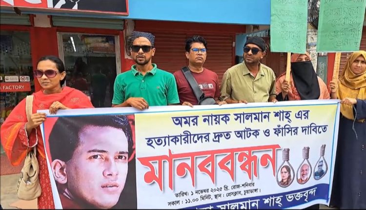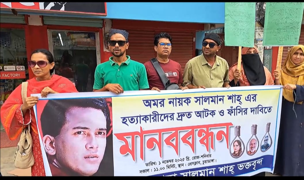 চুয়াডাঙ্গায় চিত্রনায়ক সালমান শাহ’র হত্যাকারীদের দ্রুত গ্রেপ্তার ও ফাঁসির দাবিতে মানববন্ধন কর্মসূচি পালন