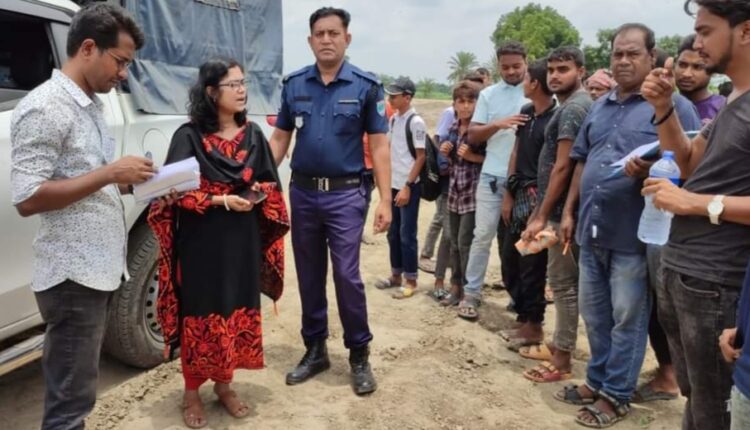 জীবননগর ব্যুরো: জীবননগর উপজেলার উথলীতে ভৈরব নদের পাড় থেকে অবৈধভাবে মাটি কেটে বিক্রি করার অপরাধে ভ্রাম্যমাণ আদালতে মেহেদী হাসান নামে এক যুবককে ৫০ হাজার টাকা জরিমানা করা হয়েছে। গতকাল মঙ্গলবার দুপুরে উপজেলা সহকারী কমিশনার (ভূমি) তিথি মিত্র ভ্রাম্যমাণ আদালত পরিচালনা করে এ জরিমানা করেন। ভ্রাম্যমাণ আদালত সূত্রে জানা গেছে, কুষ্টিয়া জেলার ভেড়ামারায় মৃত আকুল মিয়ার ছেলে মেহেদী হাসান (২৭) উথলী গ্রামের ঘবঘোপি শ্মশানের পার্শবর্তী ভৈরব নদের পাড় থেকে মাটি কেটে বিক্রি করছিলো। গোপন সংবাদের ভিত্তিতে মঙ্গলবার দুপুরে ভ্রাম্যমাণ আদালত ঘটনাস্থলে উপস্থিত হয়ে অবৈধভাবে মাটিকাটা এবং বিক্রি করার সত্যতা পান। এ সময় সরকারি যায়গা থেকে মাটি কেটে বিক্রির অপরাধে বালুমহাল ও মাটি ব্যবস্থাপনা আইন-২০১০ মোতাবেক মেহেদী হাসানকে ৫০ হাজার টাকা জরিমানা করা হয়। এলাকাবাসী জানায়, অভিযুক্ত মেহেদী হাসান নিজেকে সরকার দলীয় প্রভাবশালী নেতাদের আত্মীয় পরিচয় দিয়ে এবং প্রশাসনের উচ্চপদস্থ কর্মকর্তার আত্মীয়ের পরিচয়ে উথলী এলাকায় দীর্ঘদিন ধরে সরকারি যায়গা থেকে অবৈধভাবে মাটি কেটে বিক্রি করে আসছে। তার এ অপকর্মের কেউ প্রতিবাদ করলে মেহেদী হাসান তাদেরকে প্রভাবশালী রাজনৈতিক নেতার মাধ্যমে মিথ্যা মামলায় ফাঁসানোর হুমকি দিতো। অভিযুক্ত মেহেদী হাসানকে জরিমানা করায় এলাকাবাসী জীবননগর উপজেলা প্রশাসনকে সাধুবাদ জানিয়েছেন।