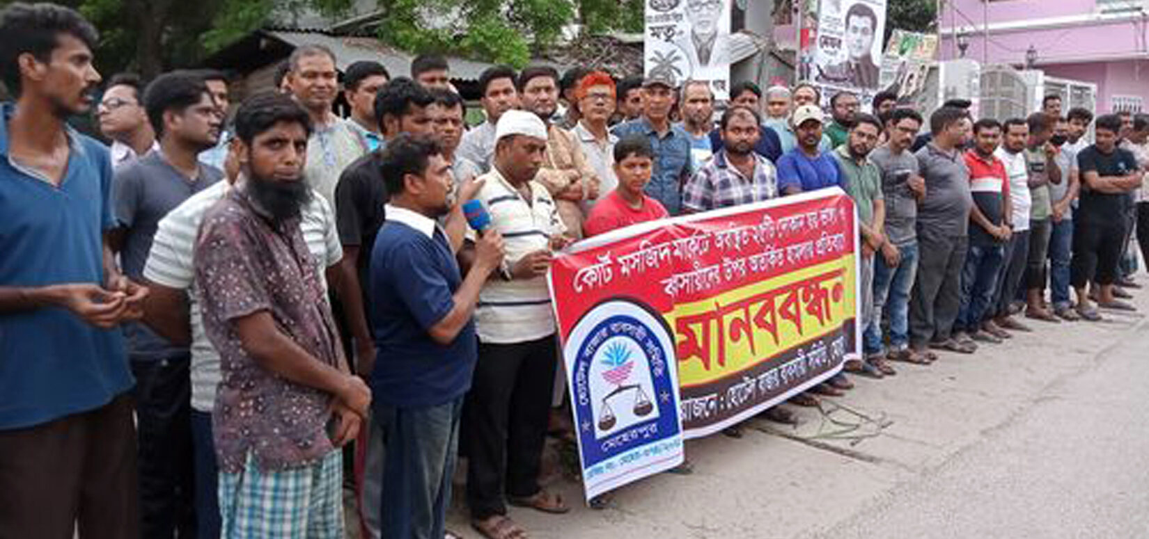 এদিকে মেহেরপুর কোর্ট মসজিদের সামনে দোকানপাট ভাঙা এবং হামলার প্রতিবাদে মানববন্ধন করেছে মেহেরপুর শহরের হোটেল বাজারের ব্যবসায়ীরা। বিকেলে মেহেরপুর মুক্তিযোদ্ধা কমপ্লেক্সের সামনে মেহেরপুর শহরের হোটেল বাজার ব্যবসায়ী সমিতির উদ্যোগে ওই মানববন্ধন কর্মসূচি পালন করা হয়। হোটেল বাজার ব্যবসায়ী সমিতির সভাপতি আব্দুল হান্নানের সভাপতিত্বে মানববন্ধন চলাকালে সেখানে বক্তব্য রাখেন সাধারণ সম্পাদক জাহিদ ইকবাল শিমুন, সহ-সভাপতি মোমিনুল ইসলাম, সদস্য ইয়ারুল ইসলাম প্রমুখ।