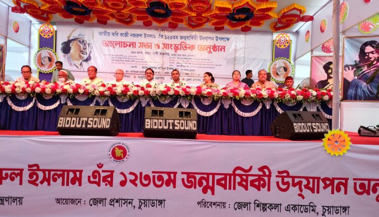 গতকাল বুধবার বিকেল সাড়ে ৪টায় দামুড়হুদার কার্পাসডাঙ্গায় অনুষ্ঠিত কবি কাজী নজরুল ইসলামের ১২৩তম জন্মবার্ষিকীর অনুষ্ঠানে প্রধান অতিথির বক্তব্যে তিনি এসব কথা বলেন। তিনি আরও বলেন, এই কার্পাসডাঙ্গায় কবির নামে একটি হাসপাতাল, নজরুল গবেষণা ইনস্টিটিউট ও নজরুল পাঠাগার প্রতিষ্ঠা করা যায় তার প্রয়োজনীয় ব্যবস্থা গ্রহণ করবো।